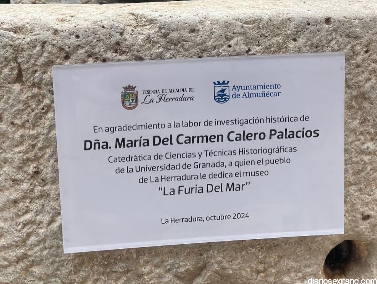 “El museo en el que estamos hoy cobra todo su sentido gracias a su trabajo, y por eso queremos plasmar en esta placa, para que quede inmortalizado, nuestro eterno agradecimiento por su trabajo y aportación a la verdad de un hecho histórico de tal relevancia”, dijo el regidor sexitano reiterando el agradecimiento a María del Carmen Calero