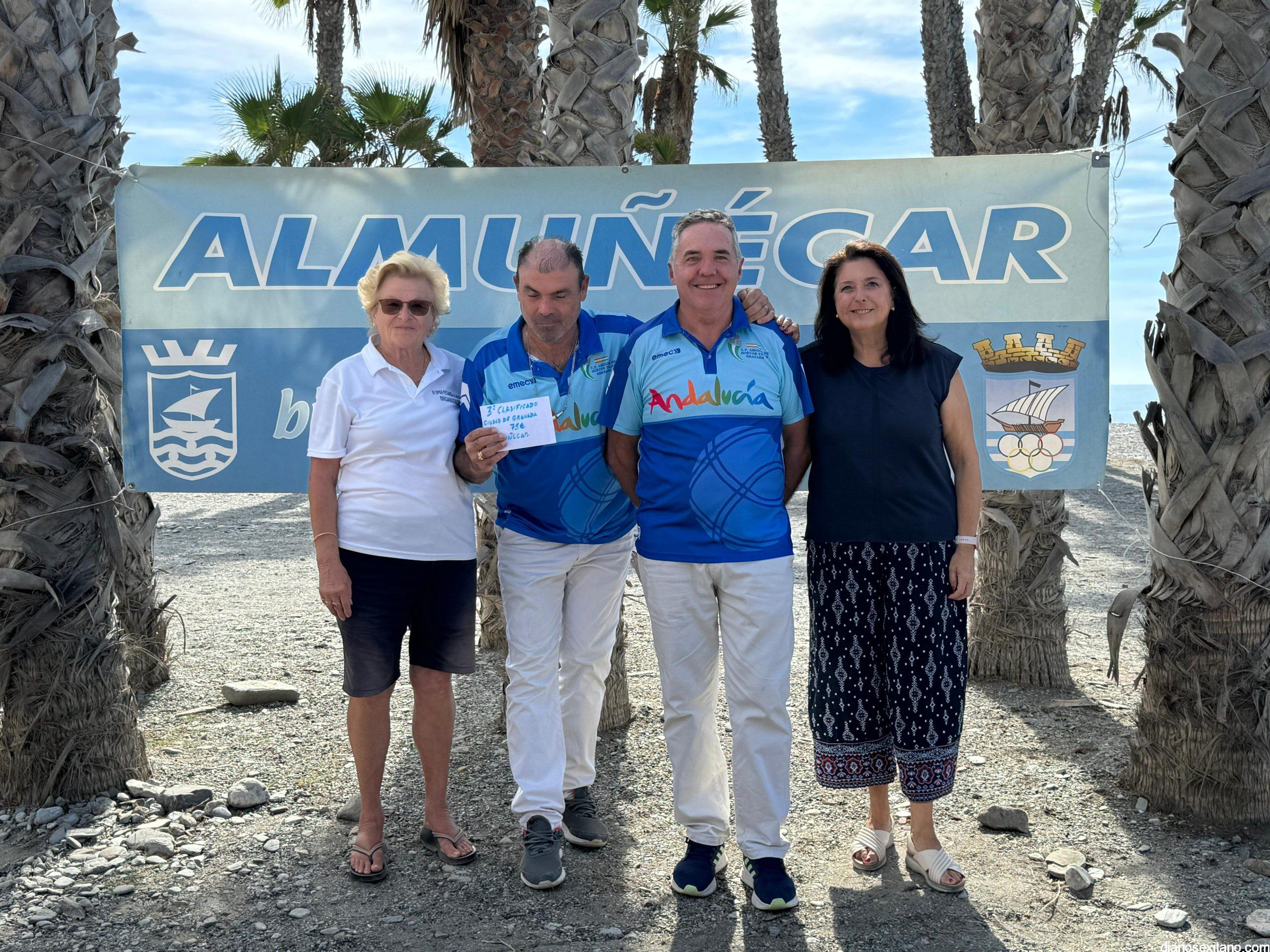 La entrega de premios estuvo presidida por la concejala de Servicios Sociales, María del Carmen Reinoso, el delegado provincial de la Federación Andaluza de Petanca (FAP), Carlos Mata, y la presidenta y el vicepresidente del Club Petanca Internacional Almuñécar, Nicole Logist y Juan Luis Ribas, respectivamente.
