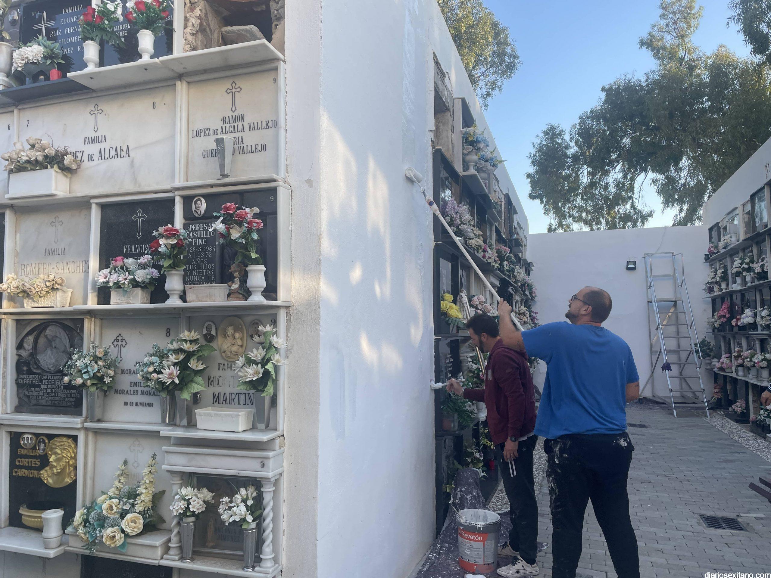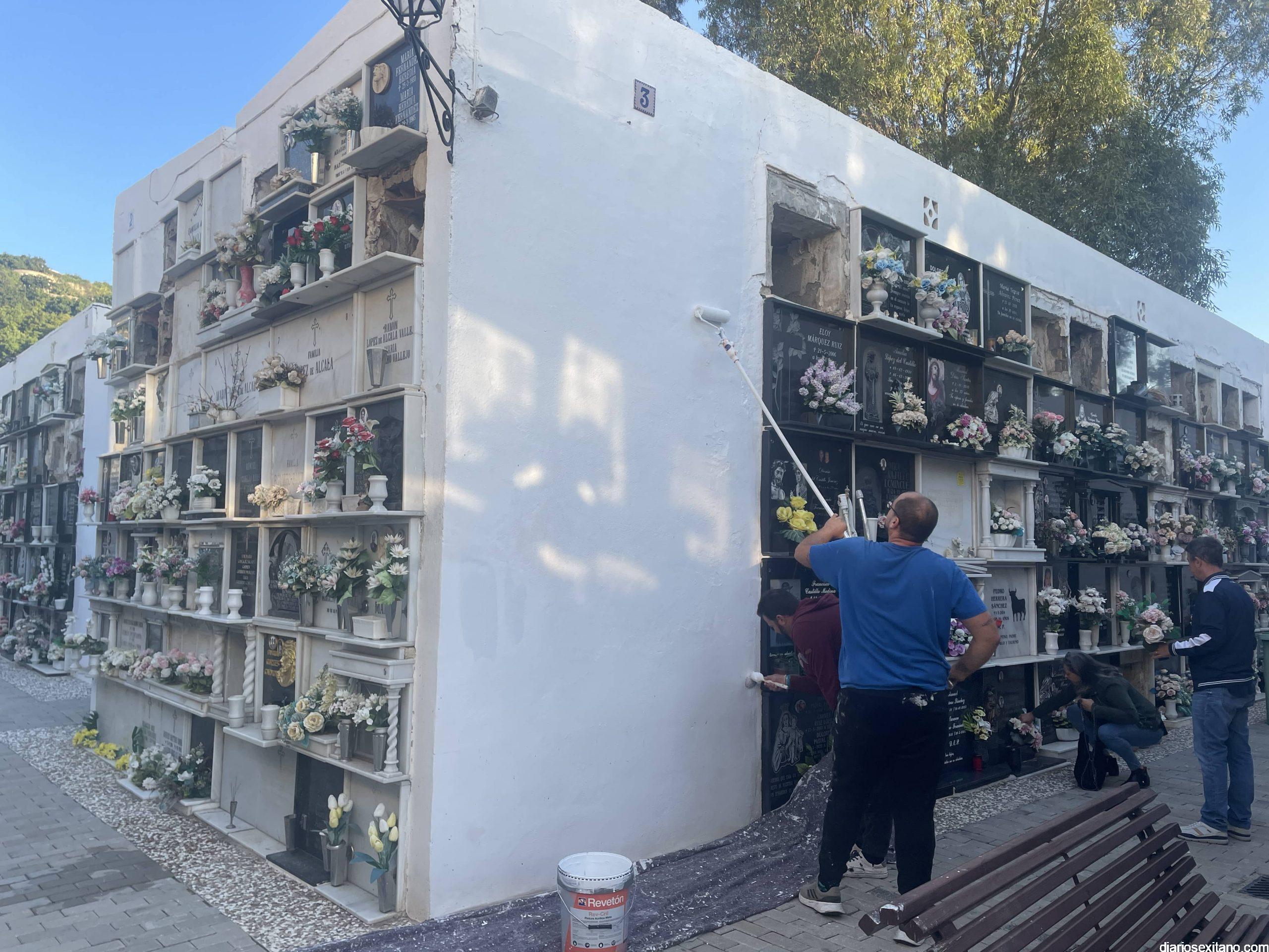 Desde la Tenencia de Alcaldía y la empresa adjudicataria del Servicio de Mantenimiento de los cementerios sexitanos se ha venido realizando en los últimos días un intenso trabajo de puesta a punto, centrados en la pintura, jardinería y limpieza del vial de acceso para lo cual ha sido necesaria la utilización de maquinaria especializada.