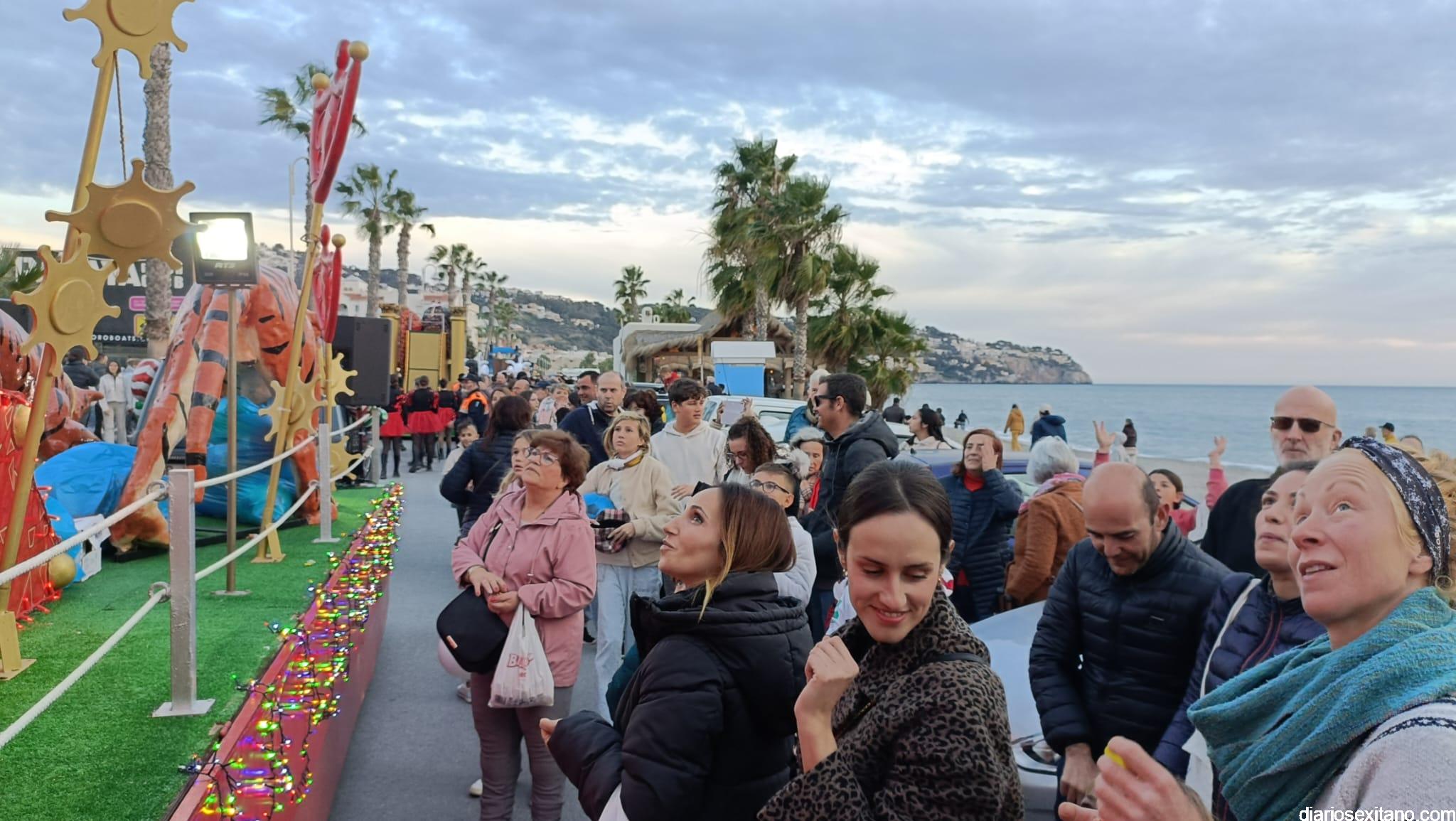 El recorrido, que fue recortado por la previsión de lluvia que afortunadamente no apareció, comenzó en el pabellón de deportes herradureño para alcanzar el paseo marítimo “Andrés Segovia hasta la rotonda de acceso por la avenida Prieto Moreno, donde se ubica el Centro Cívico. A lo largo de la misma los Reyes y Reinas no dejaron de repartir regalos y caramelos a todos los asistentes. Algunos con bolsas en mano y hasta paraguas. Todo ello se desarrollaba mientras caía la tarde y se ocultaba el sol dejando bellas estampas a la Comitiva de sus Majestades.