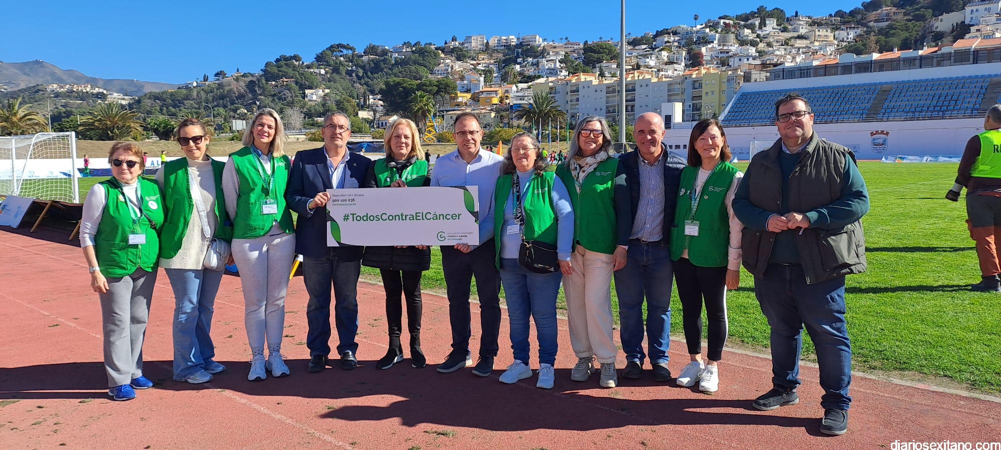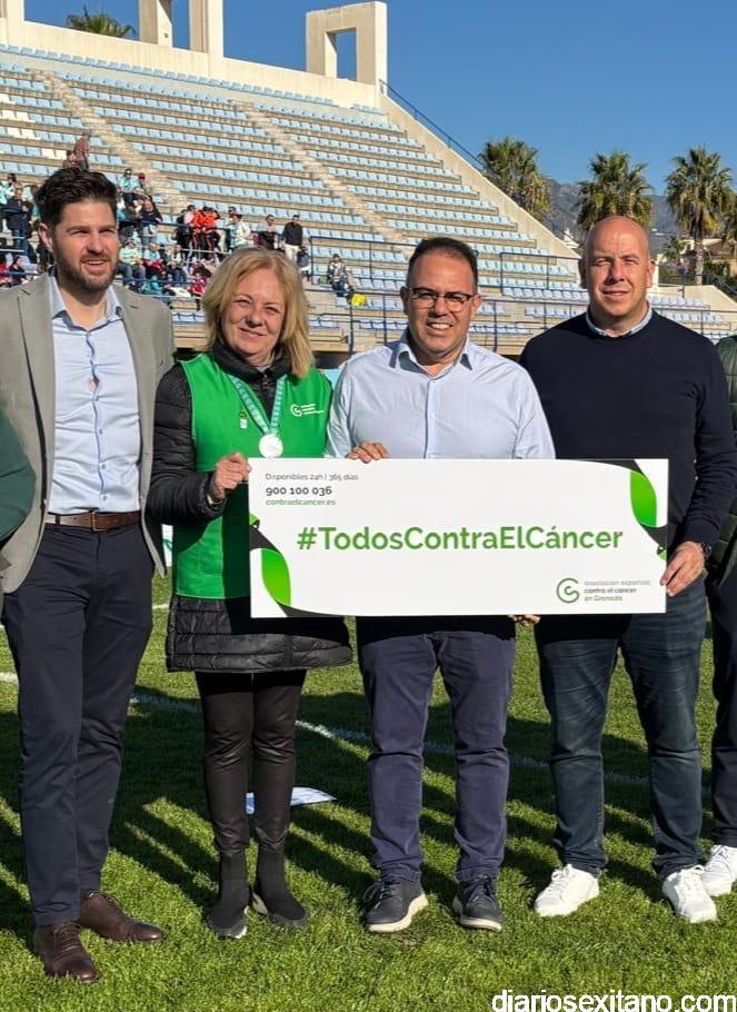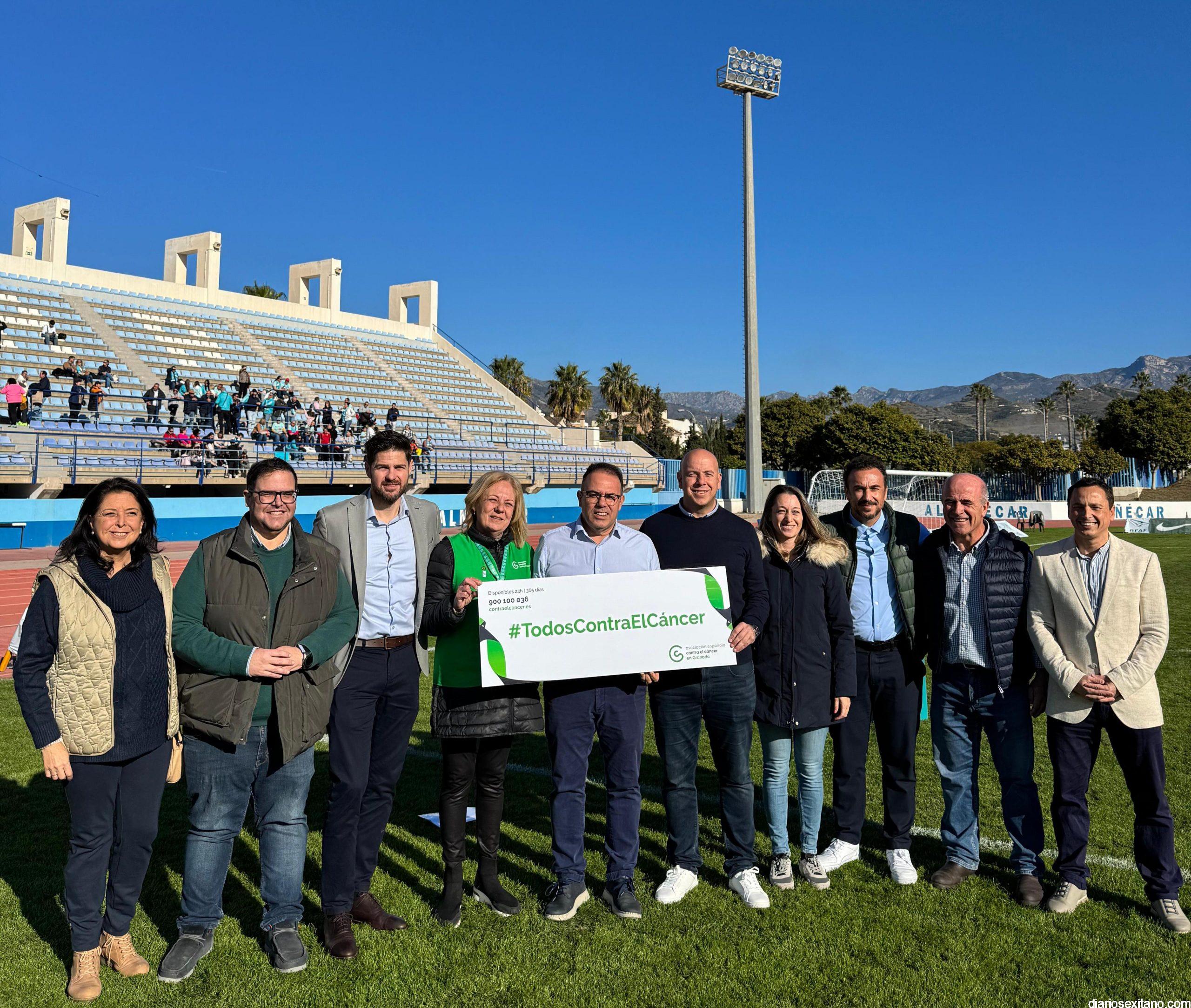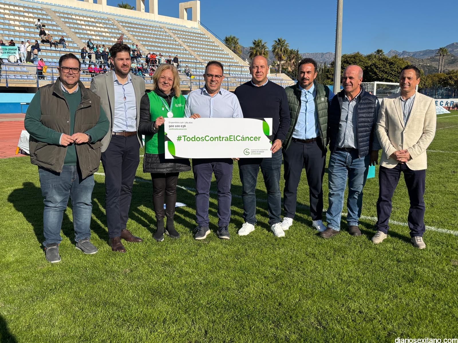 Durante el acto se leyó un manifiesto como gesto de unidad y concienciación. El mismo contó con miembros de la Junta Local de la AECC de Almuñécar con su presidenta al frente, Concepción García; el alcalde de Almuñécar , Juan José Ruiz Joya, junto a los los concejales sexitanos de Deportes, Agricultura, Medio Ambiente y Servicios Sociales, Luis Aragón, Carlos Ferrón, Lucía González y Maria del Carmen Reinoso, respectivamente. A ellos se sumaron el Presidente de la Mancomunidad de Municipios, Rafael Caballero; el diputado de Deportes e Instalaciones Deportivas de la Diputación de Granada, Eric Escobedo. Así como el presidente de la Real Federación Andaluza de Fútbol (RFAF), Pedro Curtido; el delegado provincial de la RFAF, Ismael Mazuecos. Al concluir, los representantes de las distintas instituciones presentes sostuvieron una pancarta con el lema “Todos contra el cáncer”, utilizando el deporte como una plataforma para transmitir valores de concienciación, solidaridad y apoyo a enfermos y familiares de cáncer.