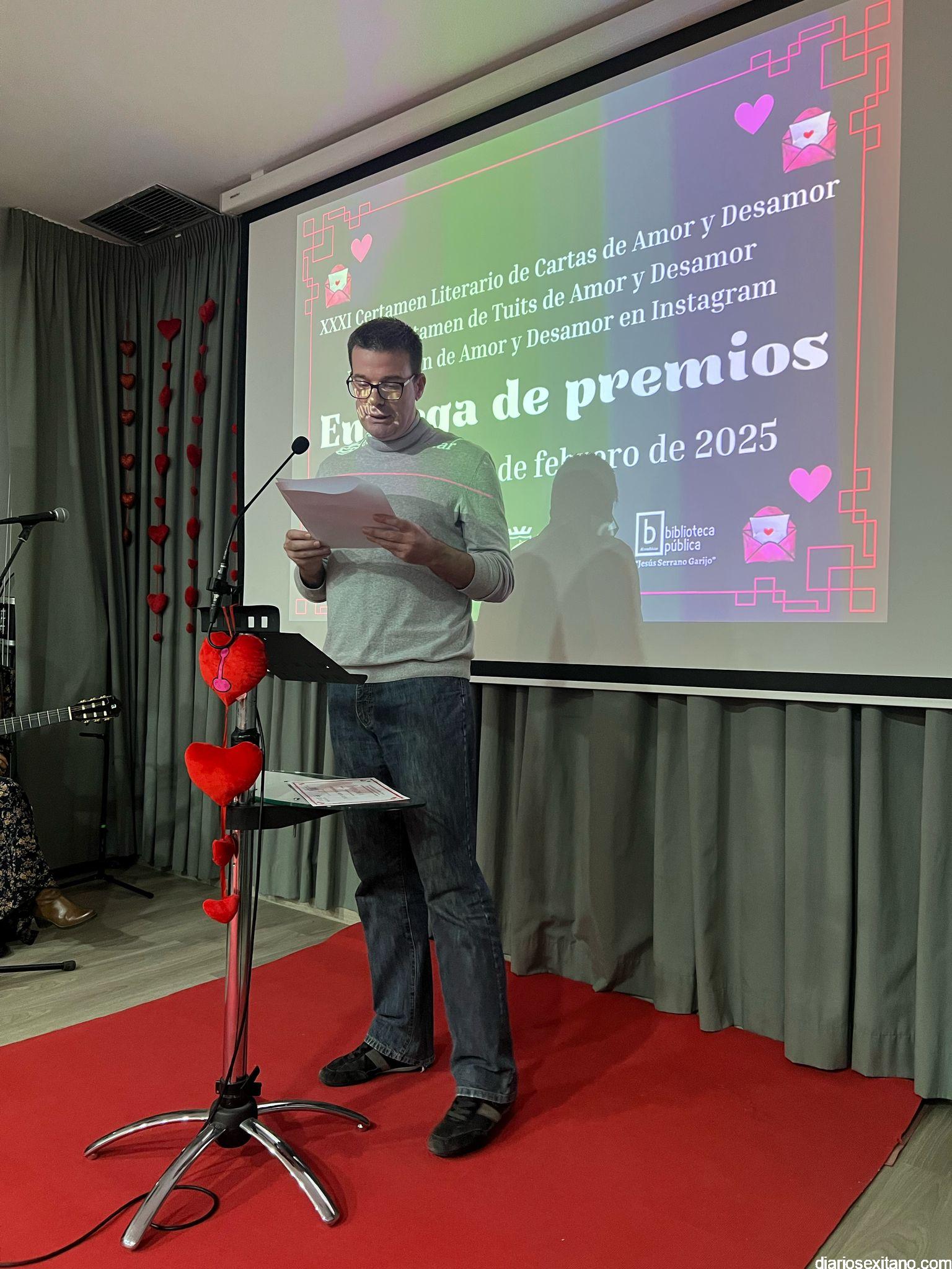 El concejal de Cultura, Alberto García Gilabert, presidió el acto de entrega de premios y lectura de los trabajos galardonados del XXXI Certamen de Cartas de Amor y Desamor de Almuñécar promovido y organizado por el Ayuntamiento sexitano, a través de la concejalía de Cultura y que tuvo como escenario la Casa de la Cultura.