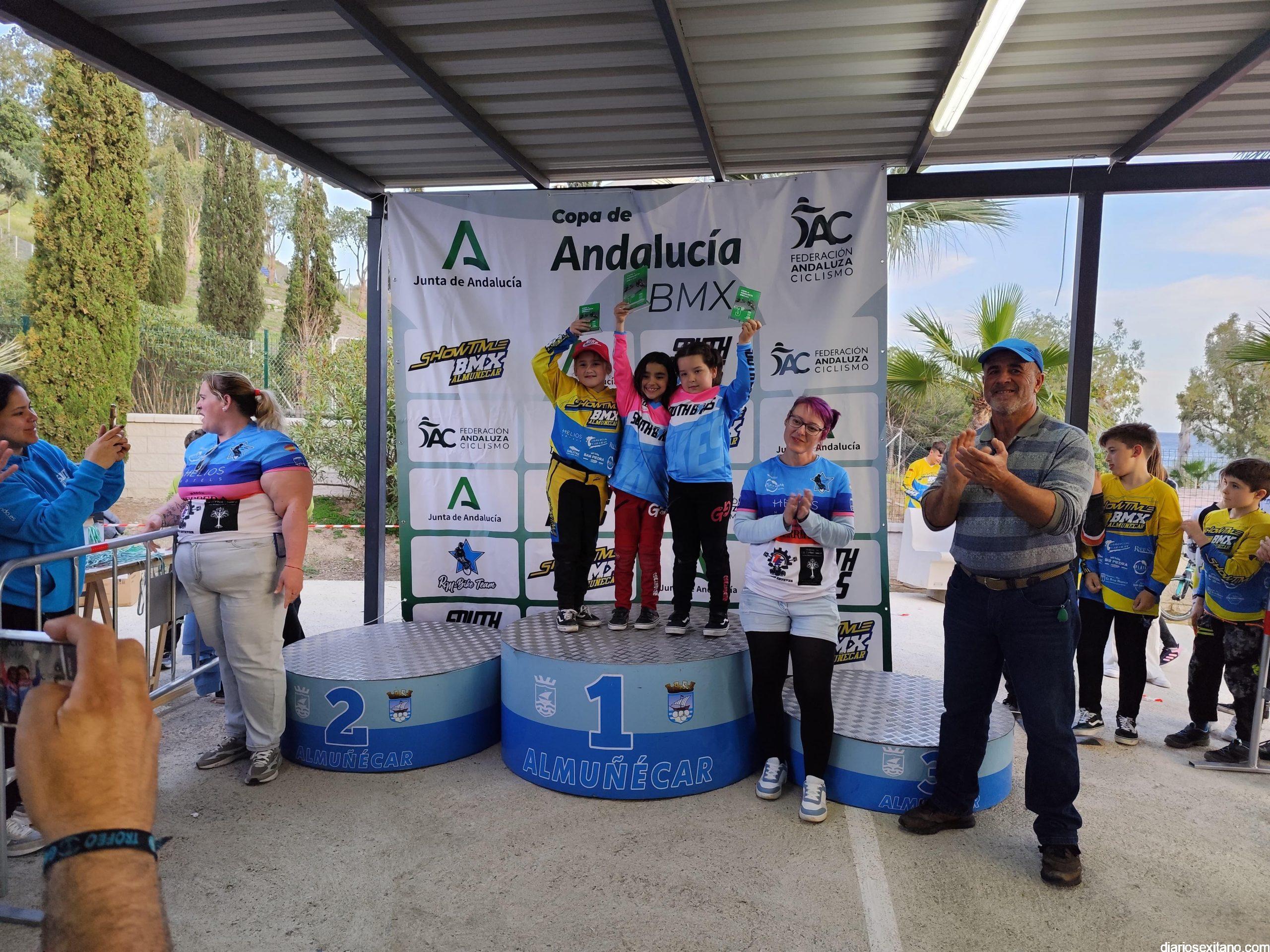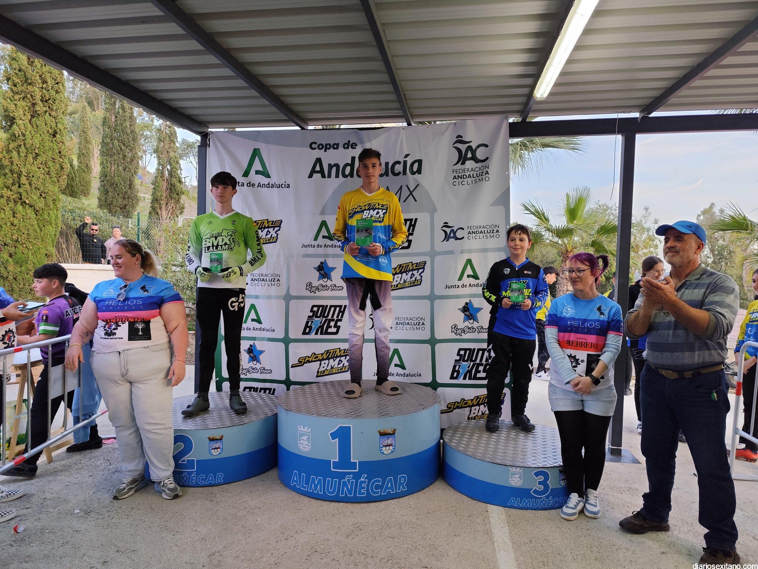 La tercera y última prueba de la Copa de Andalucía de BMX 2025 el Club Show Time Almuñécar, celebrada en el circuito sexitano de El Pozuelo, sumó un total de 16 podios entre todas las categorías y modalidades, donde el éste club contó con una representación de 23 corredores.