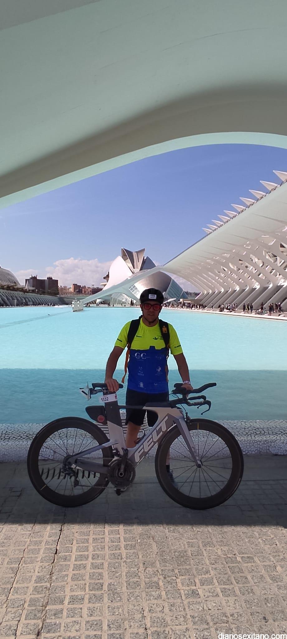 Carrera muy bonita en Puerto de Calencia, 1.9 km de natación en balsa; 90 km el sector de ciclismo, con mucho viento, exprimiendo las cualidades de los triatletas, con un puerto de montaña que hemos subido, con unas carreteras y vistas increíbles y el último sector 21 km de carrera a pie, en el cauce del Turia con final en la ciudad de las artes y las ciencias. Una vez más cruzando la meta con Javi empujando.