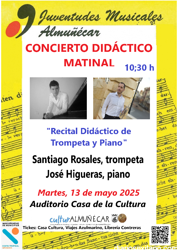 La Concejalía de Cultura de Almuñécar ha dado a conocer la “Agenda Cultural Mayo 2025” con más de una treintena de actividades que comienzan con la celebración de las Cruces de Mayo, la Feria del Libro o el XXI Festival Internacional de Poesía de Granada, entre otras.