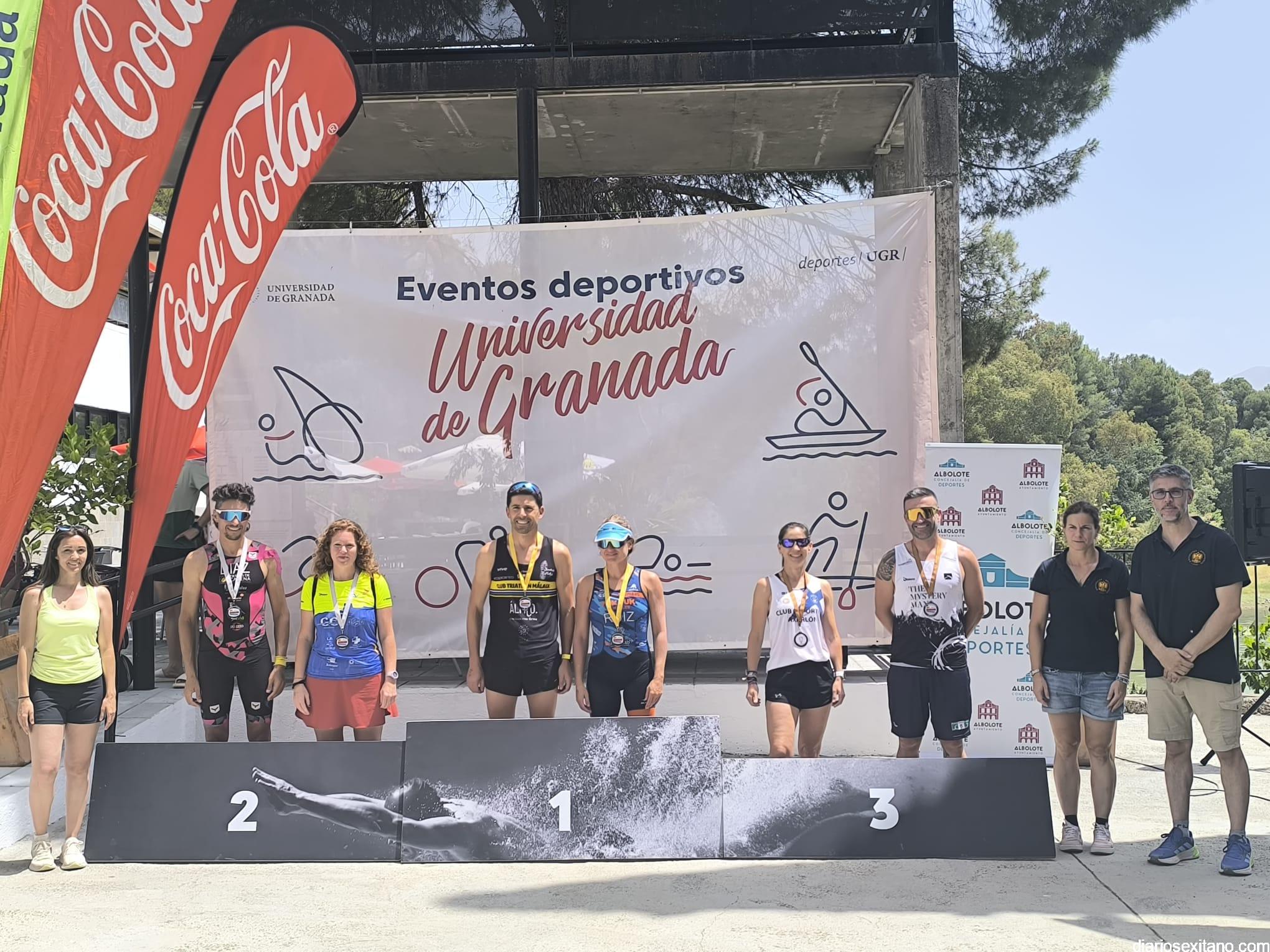 El Club Triatlón Nazarí de Almuñécar sumó dos podios femeninos en la II Acuatlón de la Universidad de Granada que se celebró este pasado domingo en el Campus Náutico del Pantano de Cubillas (Albolote) gracias a las buenas actuaciones de Sara Flores (veterana 1) y Montse Alabarce (veterana 2), que lograron un 2º puesto en sus respectivas categorías. Por su parte, Mariola Verdejo rozó el podio con un reñido cuarto puesto.