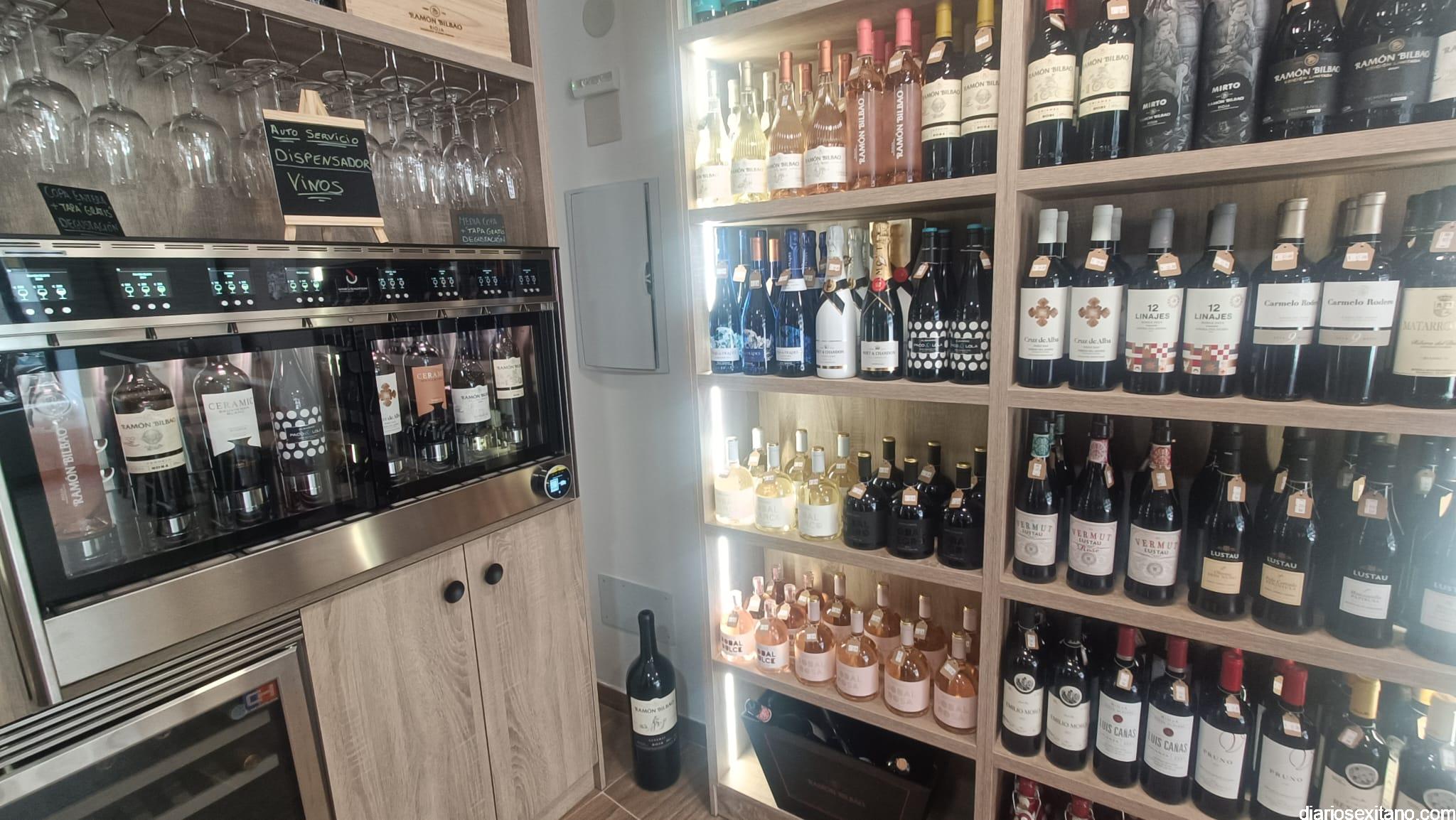 El establecimiento cuenta, como novedad destacada, con un dispensador de vinos para que el propio cliente pueda realizar su propia cata. Algo único en la provincia de Granada para autoservicio, tanto en tintos como en blancos.