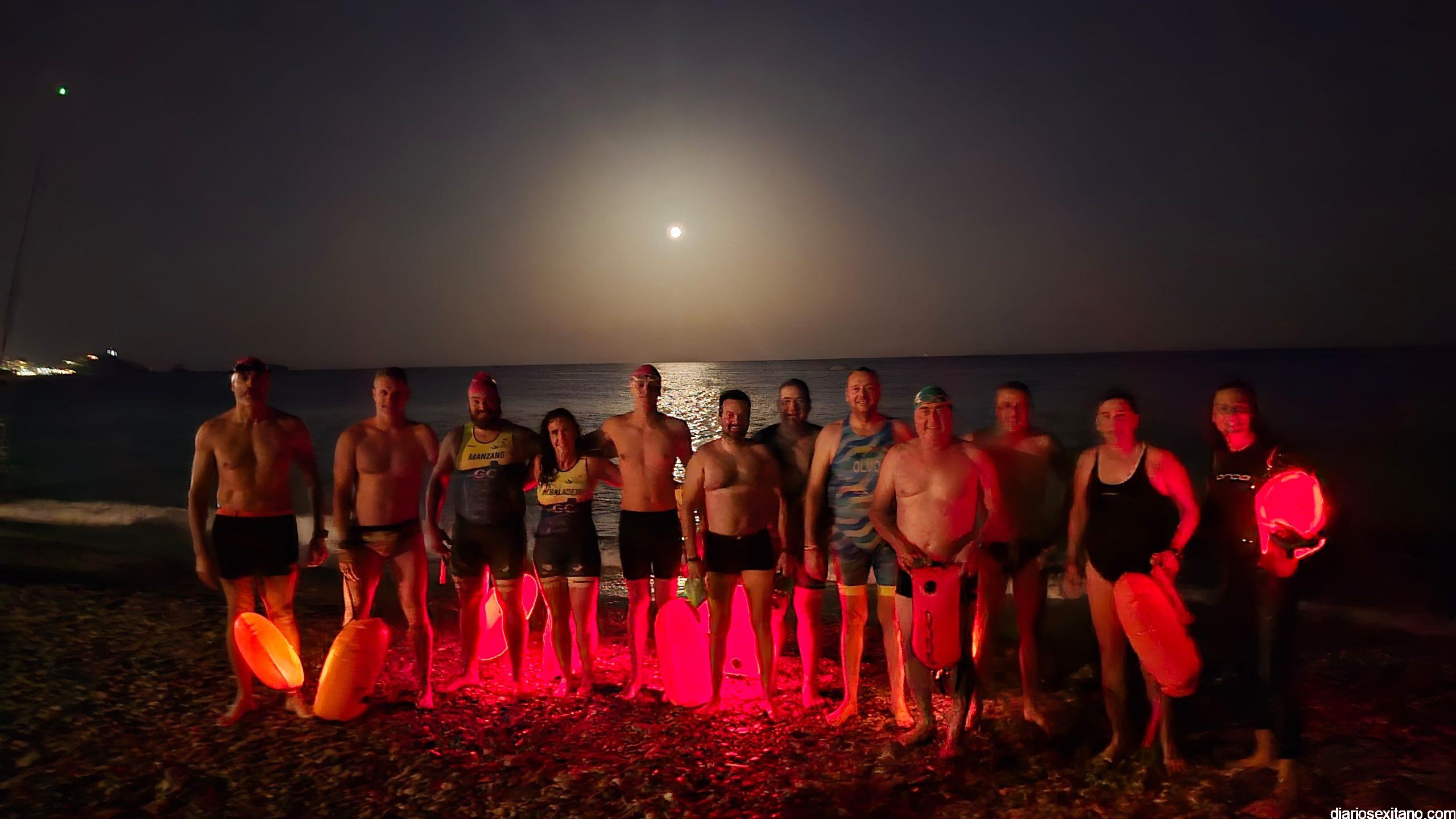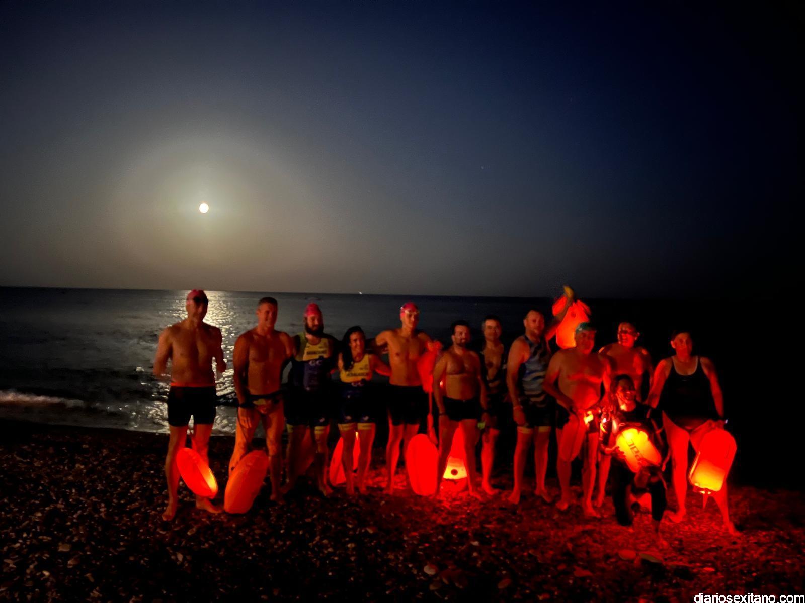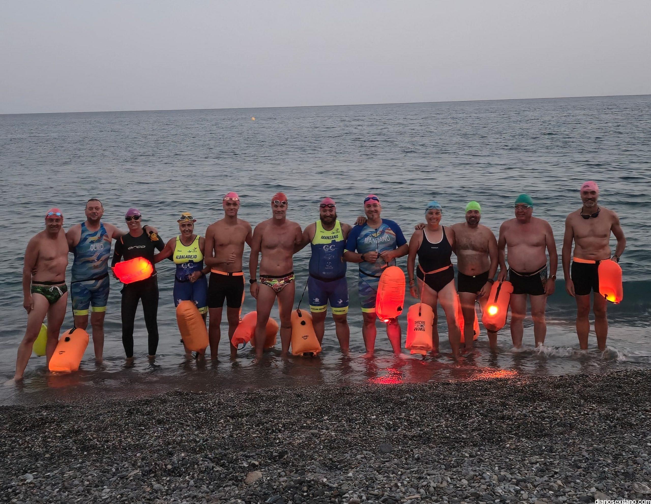 Una docena de nadadores y nadadoras participaron en la I Travesía a Nado Nocturna que celebró este jueves el Club Triatlón Nazarí de Almuñécar entre las playas sexitanas de Cotobro y El Muerto.