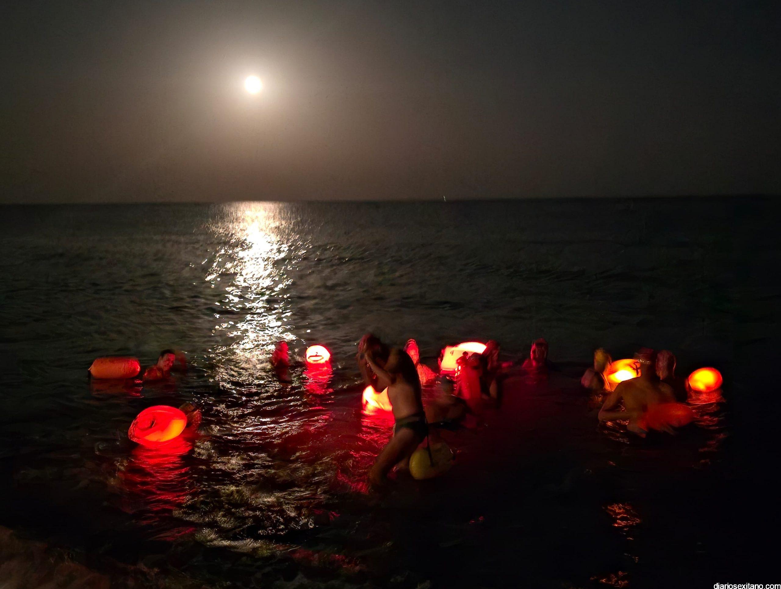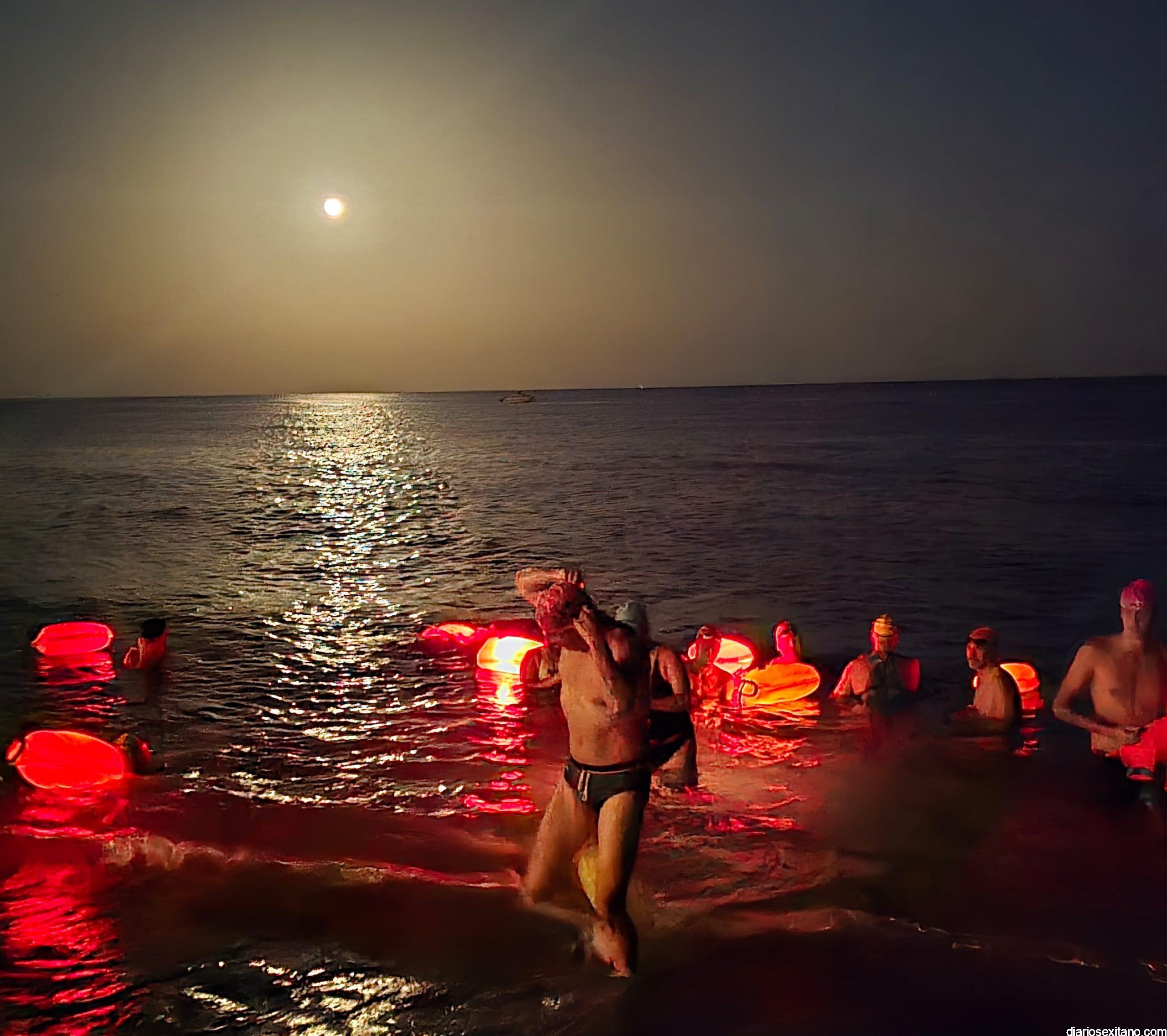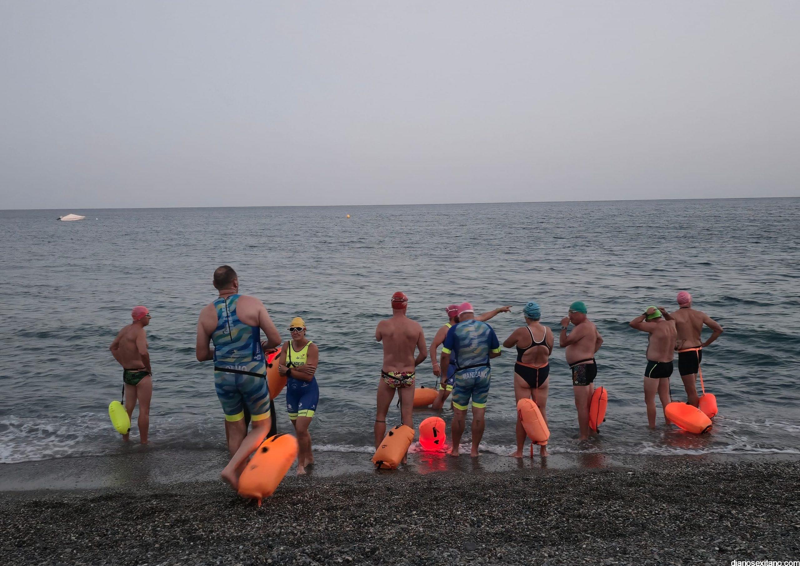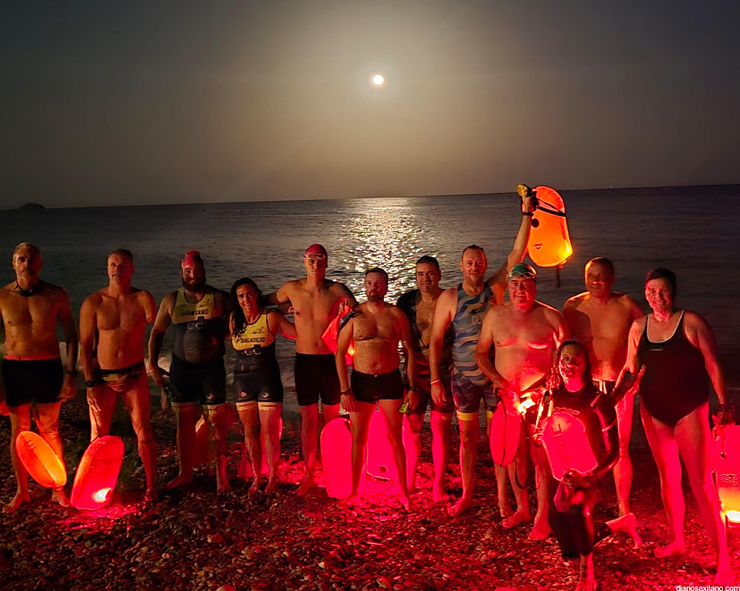 Una docena de nadadores y nadadoras participaron en la I Travesía a Nado Nocturna que celebró este jueves el Club Triatlón Nazarí de Almuñécar entre las playas sexitanas de Cotobro y El Muerto.
