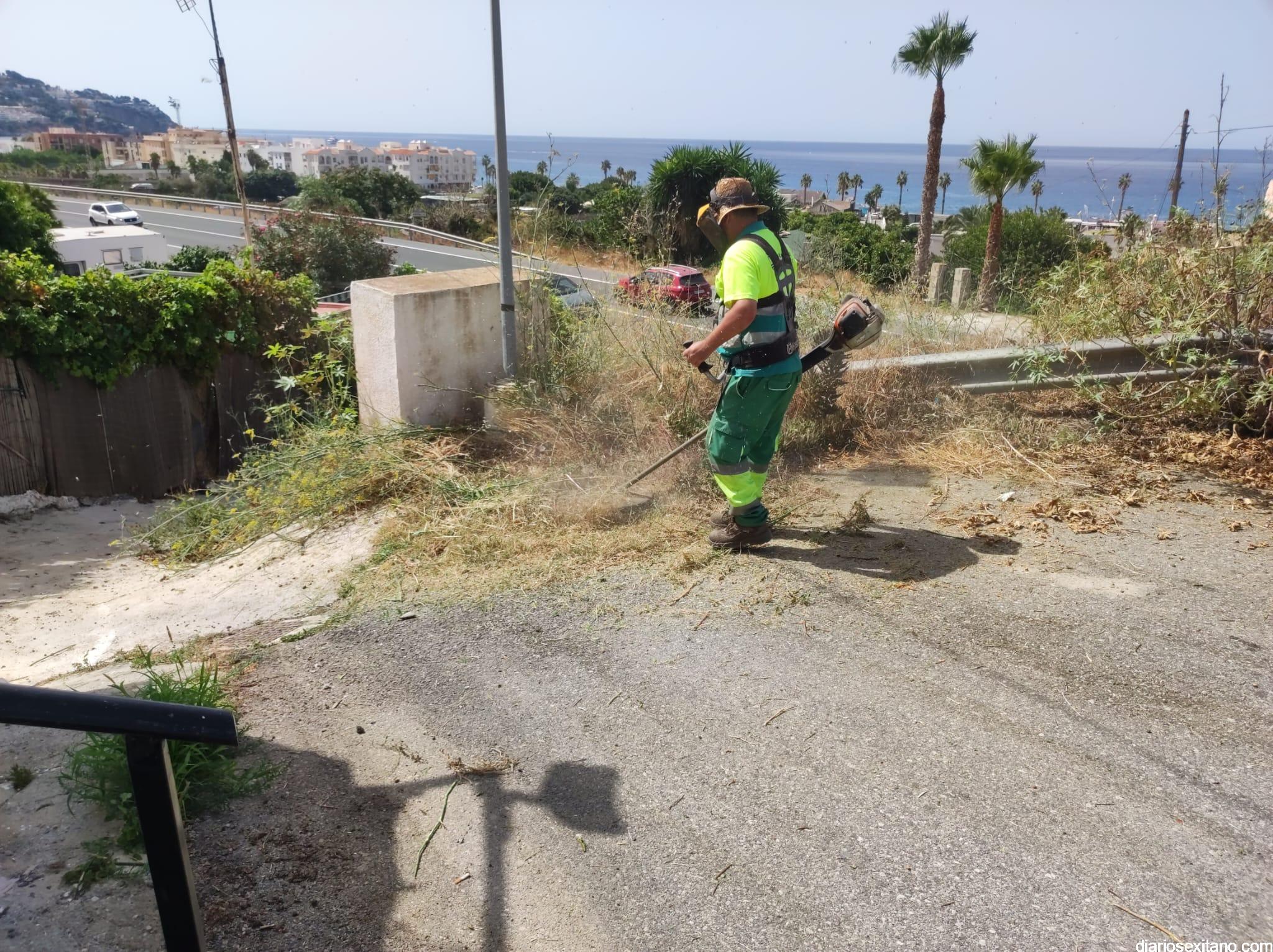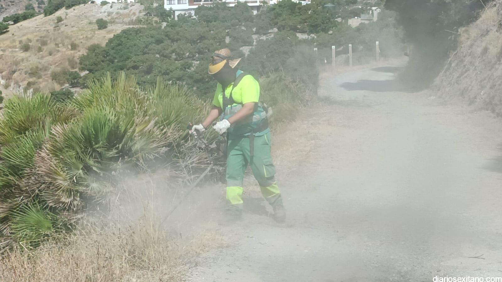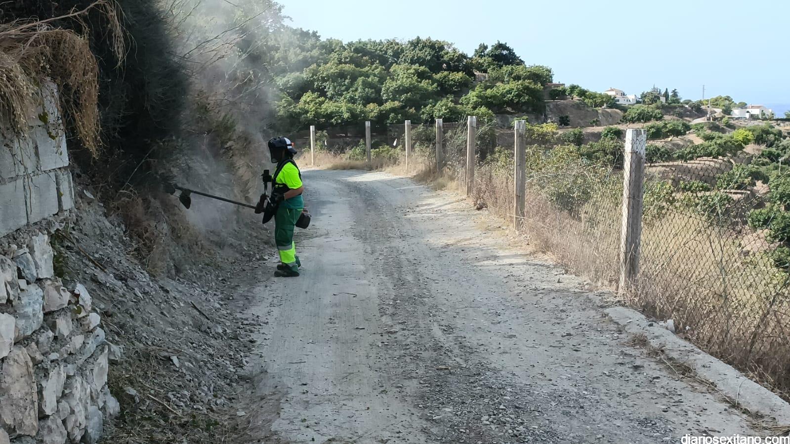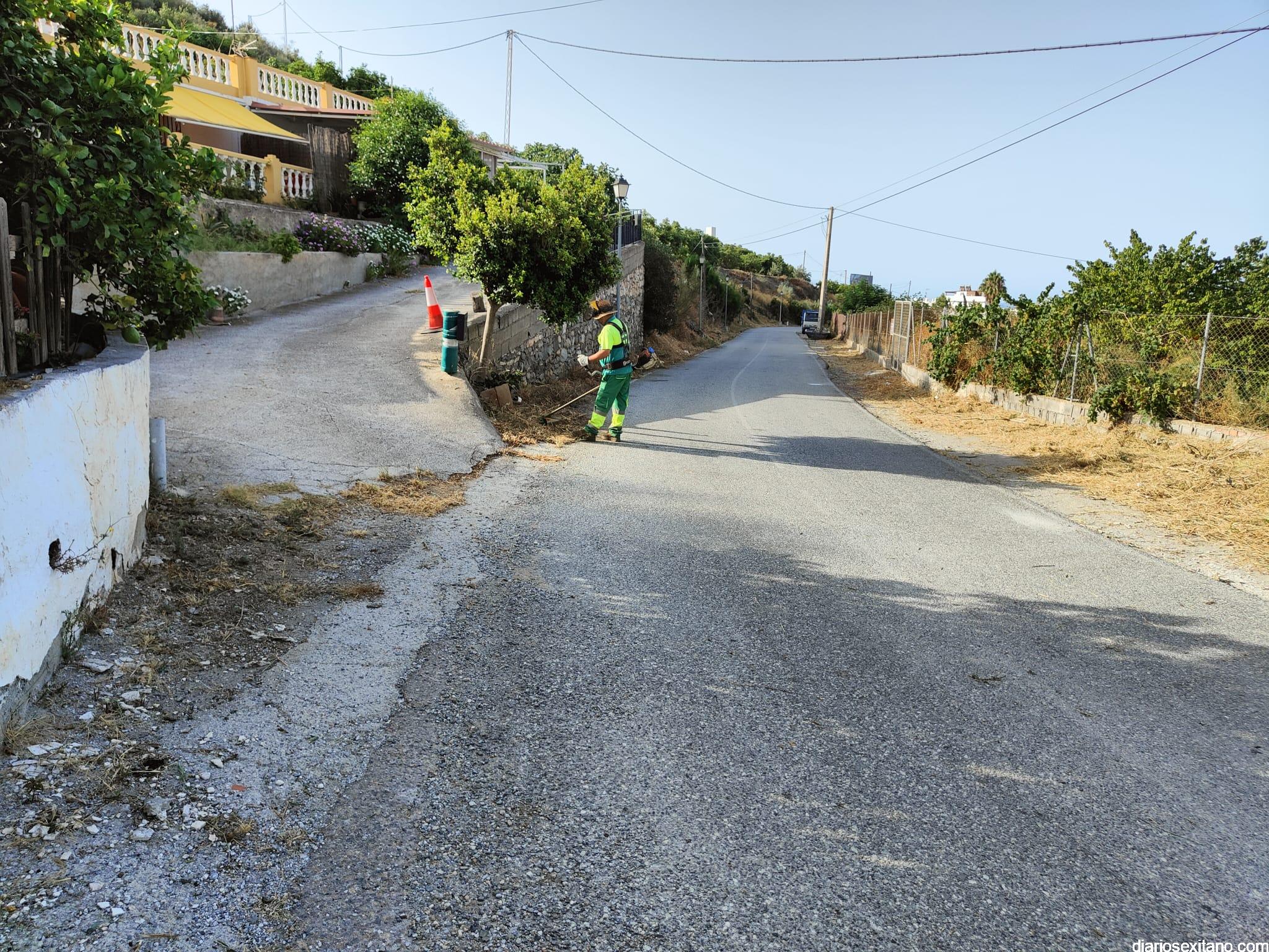 El Ayuntamiento de Almuñécar, a través del Área de Caminos, realiza esta semana una intensa limpieza y desbroce del vial de acceso al barrio de La Mezquita y el camino del Pago de Guerra, que accede por el citado barrio y situado al oeste de La Herradura