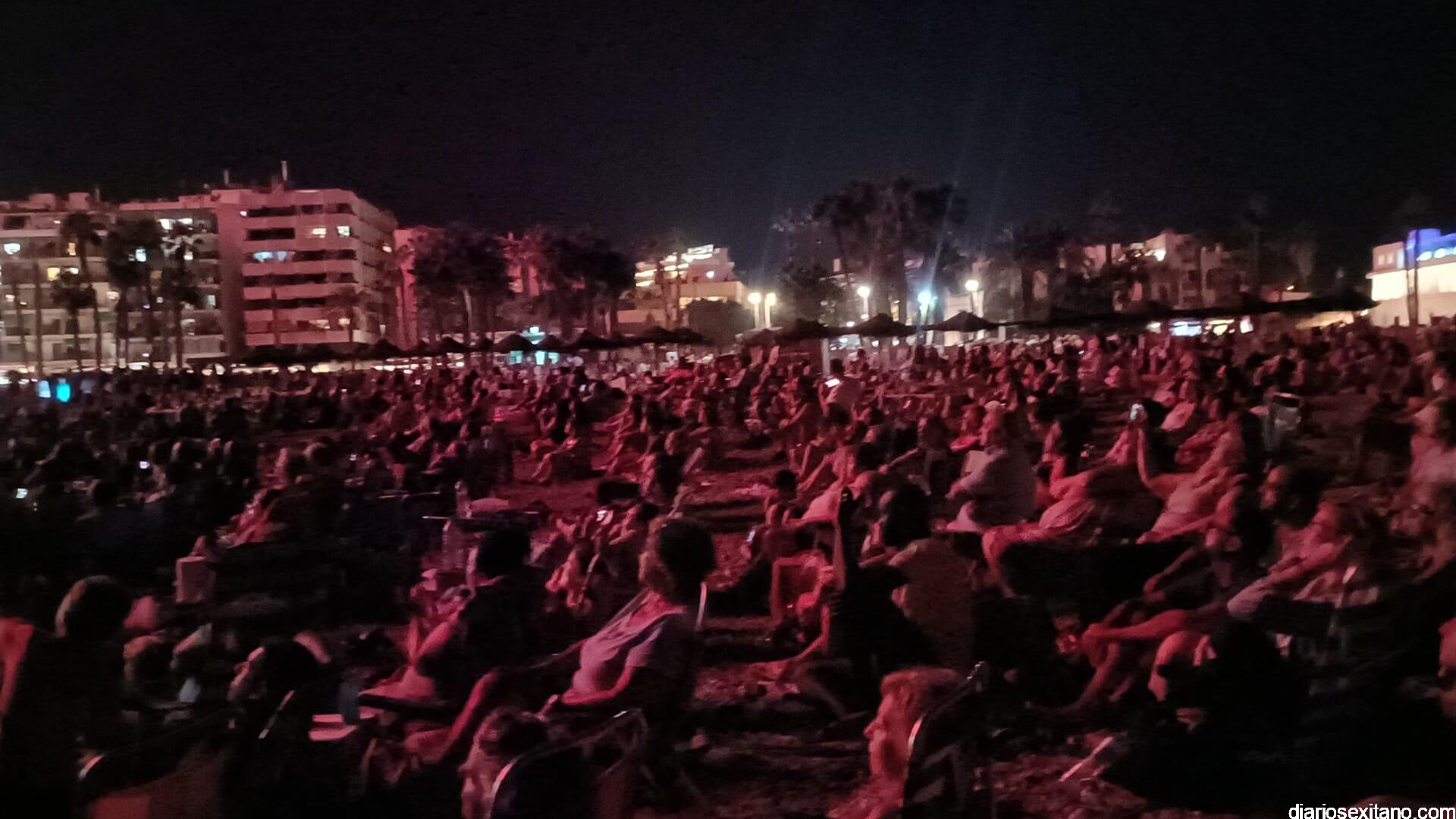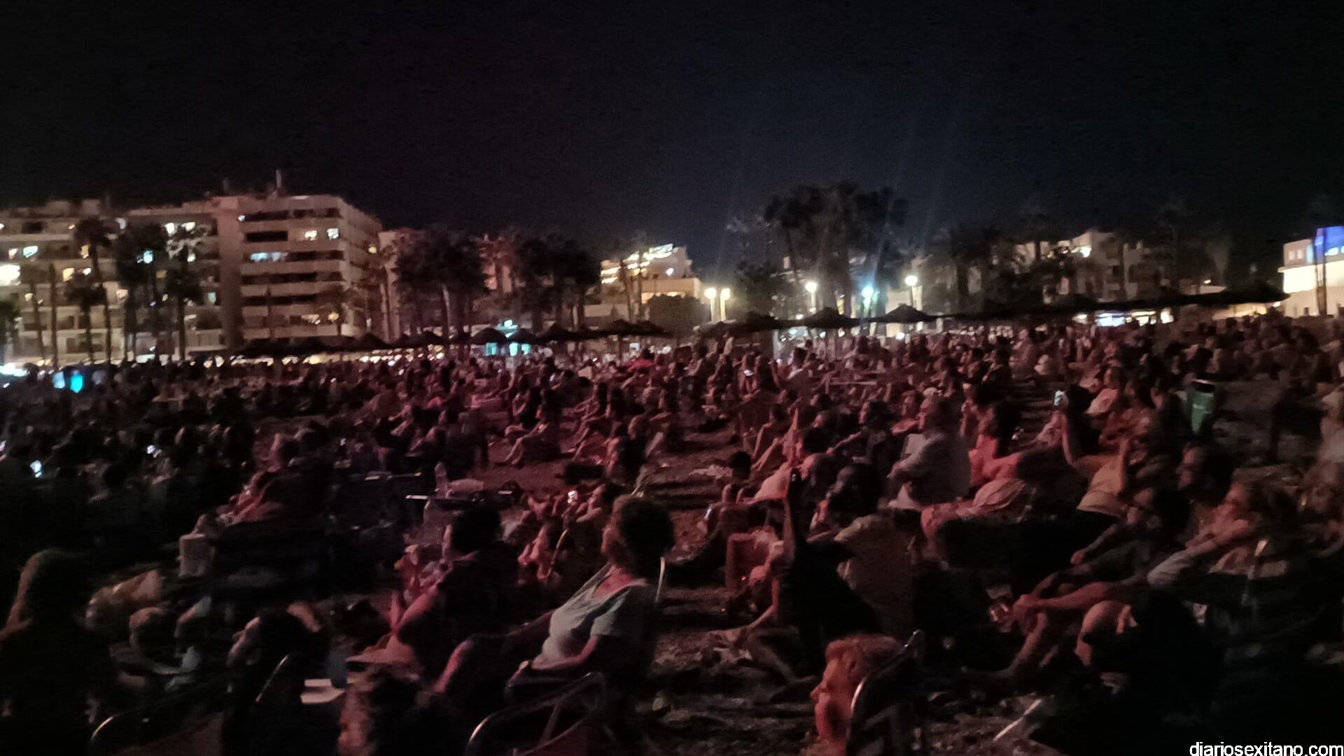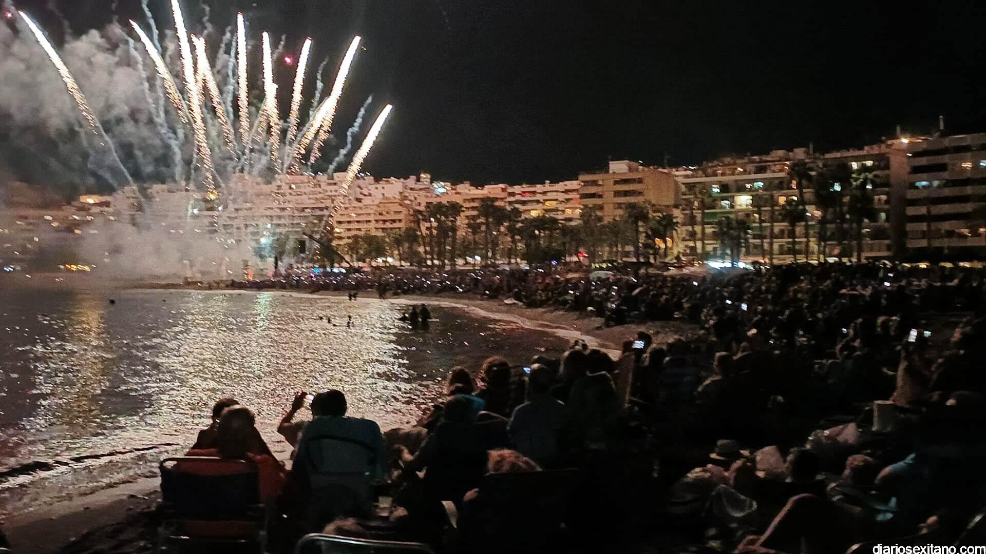 El espectáculo piromusical, diseñado al milímetro por tercer año consecutivo por Pirotecnia Zaragozana, fue visto por decenas de miles de personas que abarrotaron los paseos, playas, terrazas y las colinas de urbanizaciones, desde la Punta de la Mona hasta Los Pinos, además desde las embarcaciones.