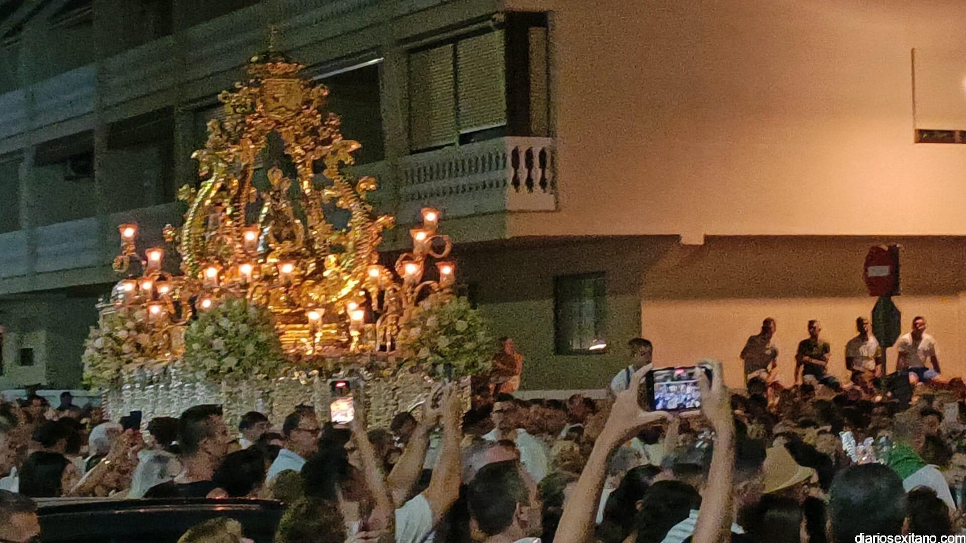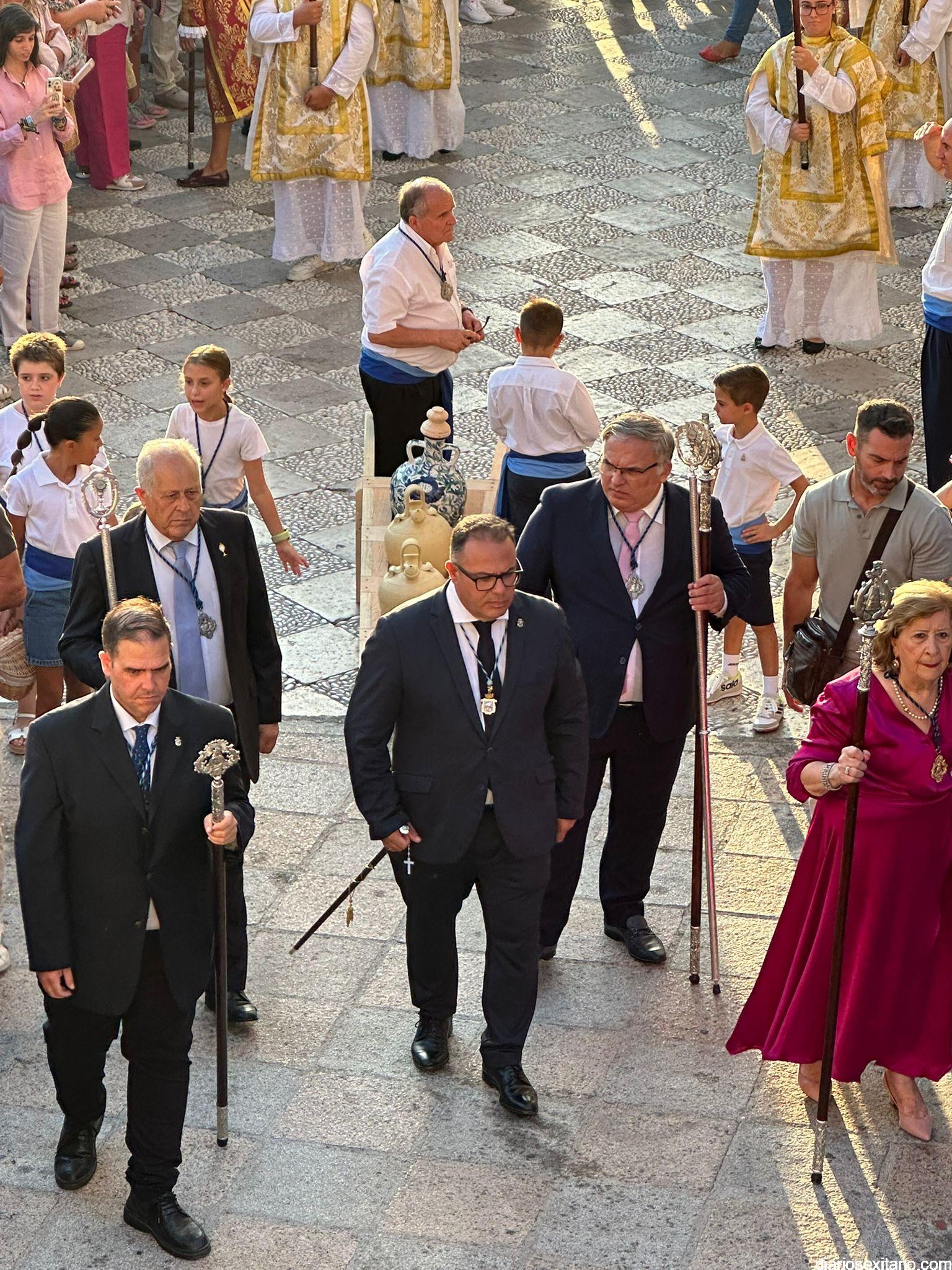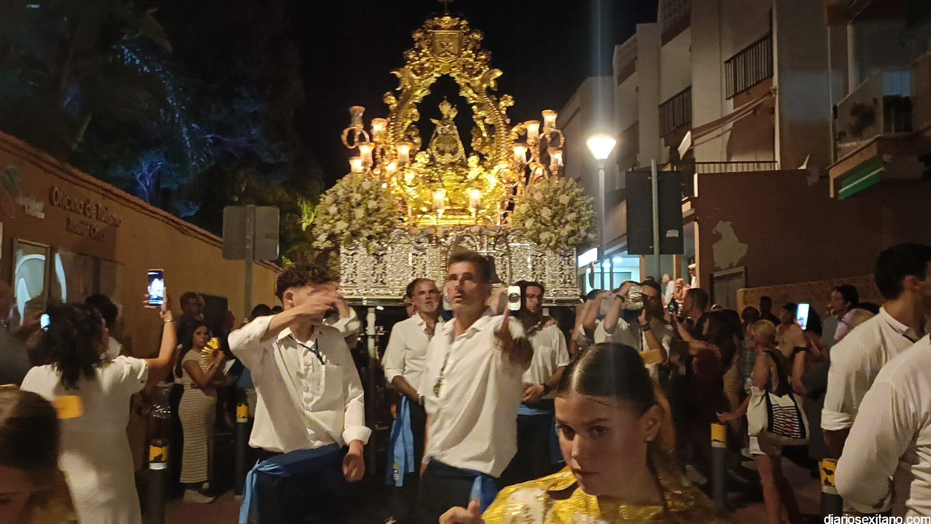 La procesión partió al caer la tarde desde el templo parroquial de la Encarnación rumbo a la playa de San Cristóbal, con todo el cortejo oficial organizado por la Hermandad encabezado por el párroco, Juan Antonio Arcos, y la representación municipal con el alcalde, Juan José Ruz Joya, al frente.