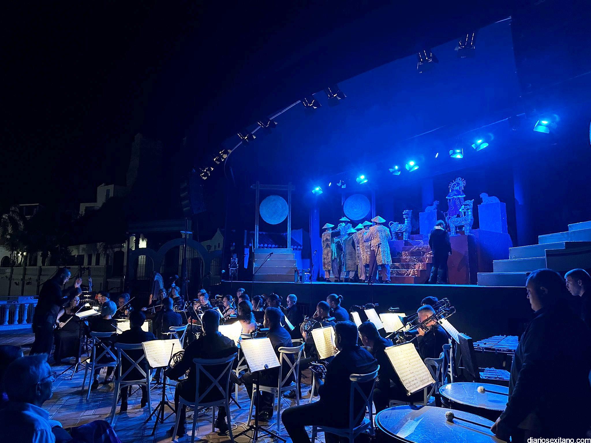 El parque «El Majuelo» de Almuñécar reunió a más de 700 personas que disfrutaron anoche de la espectacular ópera «Turandot» de Puccini, interpretada por la Ópera Nacional de Moldavia en el incomparable escenario sexitano.