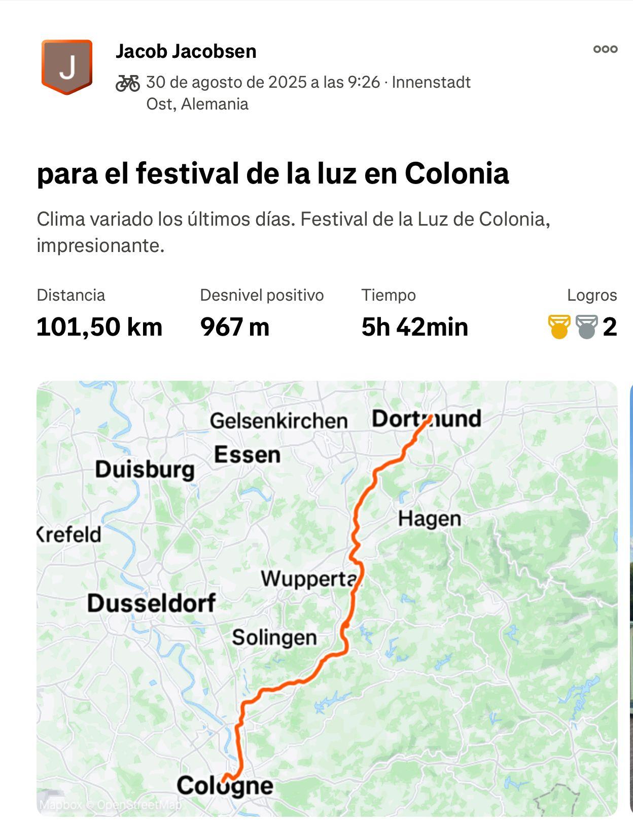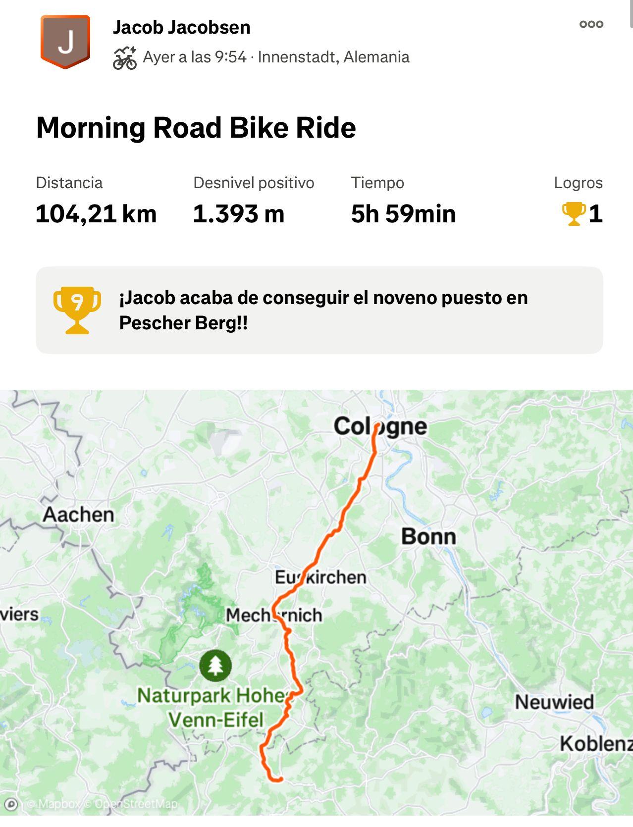 El pasado lunes hizo su primera etapa entre Copenhague (Dinamarca) y Hamburgo (Alemania). Una ruta de 325,69 km. Más tarde puso rumbo a Dortmund y, posteriormente, a Colonia y Luxemburgo, donde llegó este lunes.