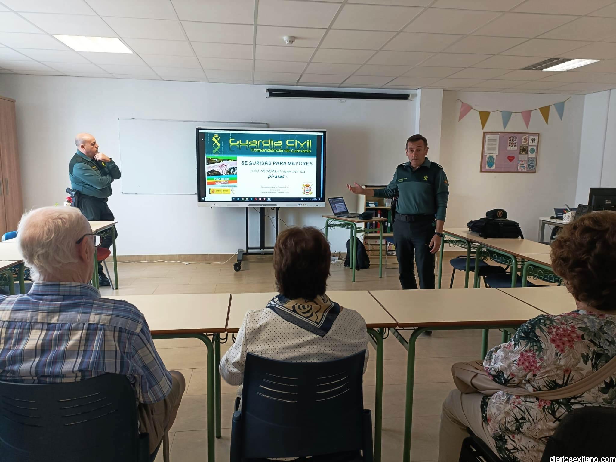 Con el objetivo de prevenir las principales amenazas, fomentar la confianza y perfeccionar la respuesta policial, se ha celebrado, en el Centro Cívico de La Herradura, una interesante charla coloquio del “Plan Mayor de Seguridad”, impartida por dos agentes especialistas en la materia desplazados desde la Comandancia de la Guardia Civil de Granada.