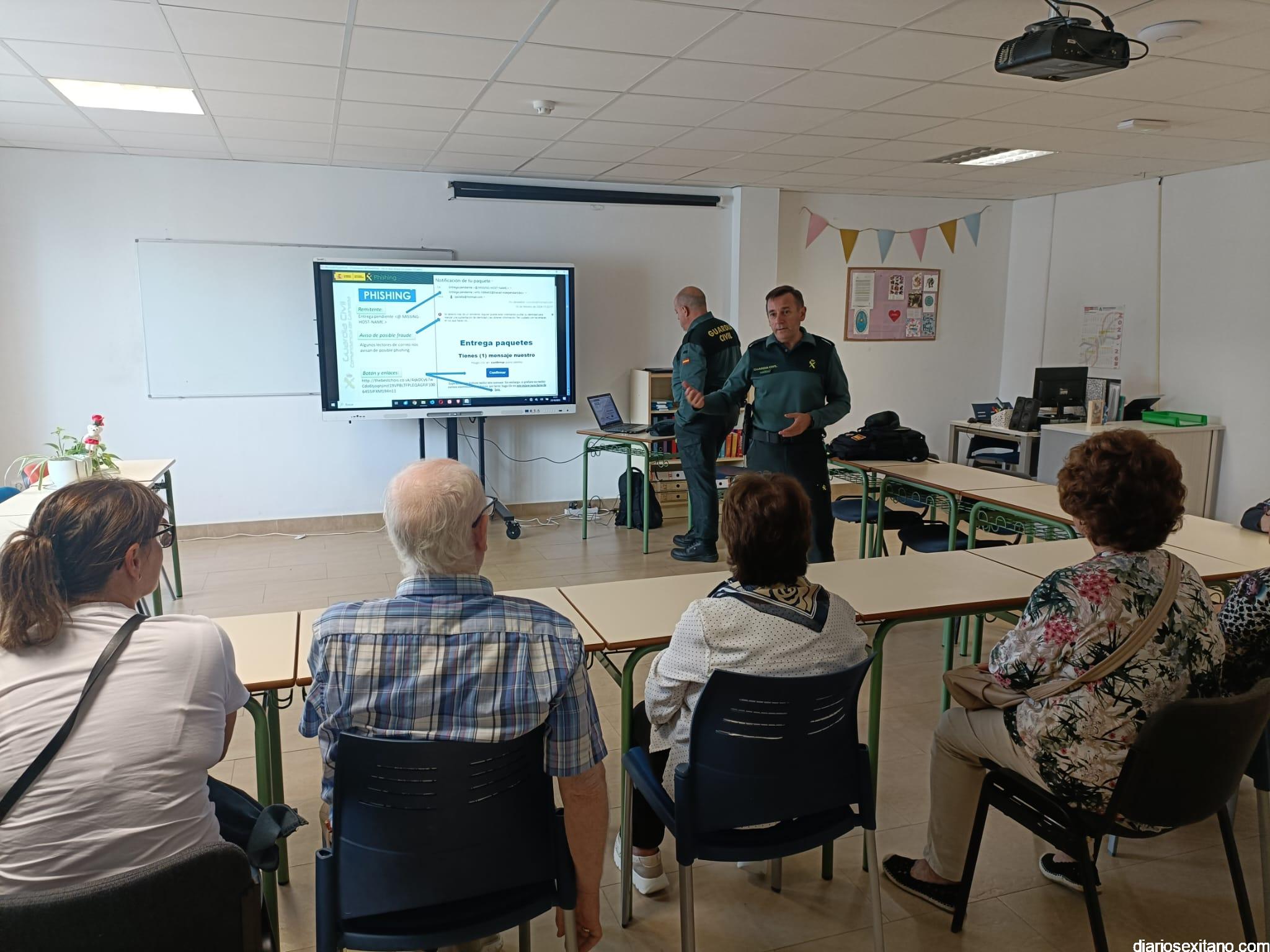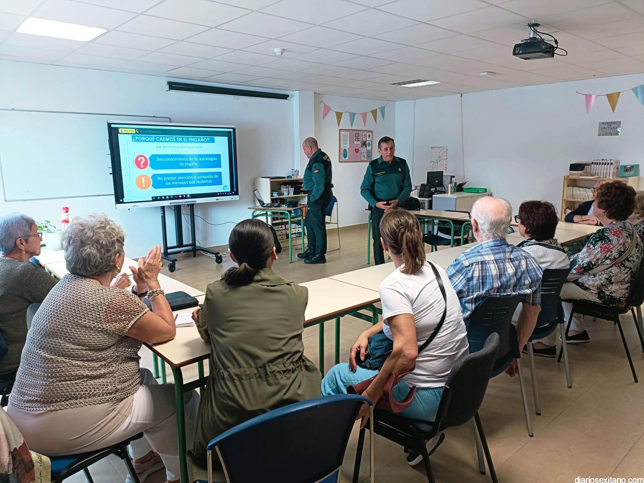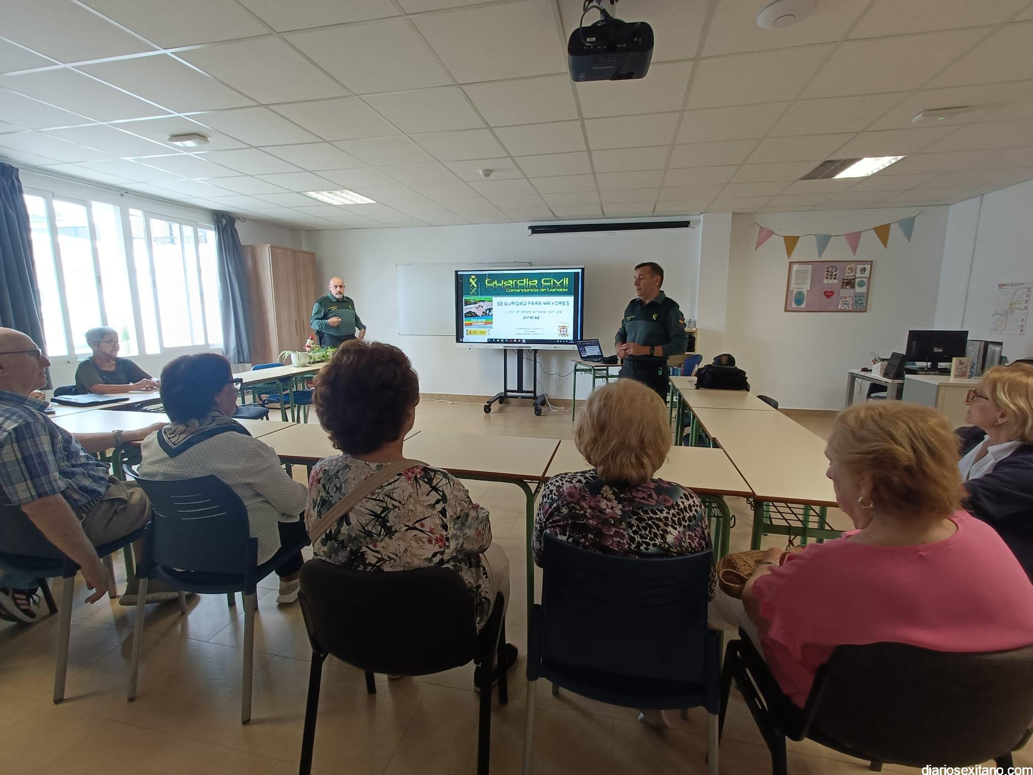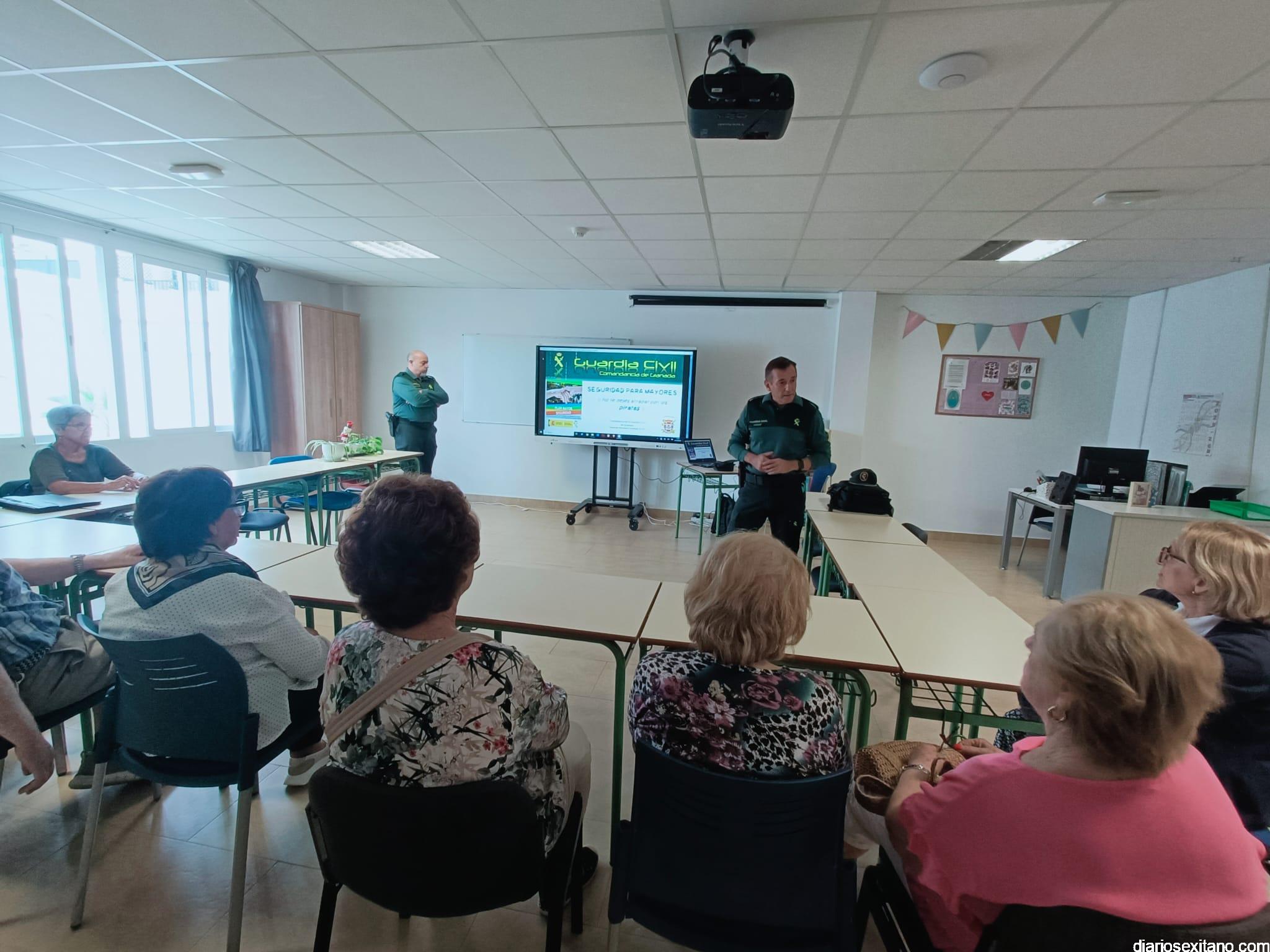 Los agentes informaron, expusieron y alertaron sobre los problemas de seguridad que suelen afectar, principalmente, a personas mayores: robos, timos y una amplia variedad de riegos en este apartado “La charla-coloquio Plan Mayor Seguridad” es un evento formativo que tiene como objetivo prevenir a las personas mayores sobre riesgos de delincuencia comunes, ofreciendo pautas y consejos prácticos para evitar ser víctimas de fraudes, robos y otros delitos. Además los agentes de la Guardia Civil informaron de la APP de Alerta que tiene a disposición Guardia Civil y Policía Nacional
