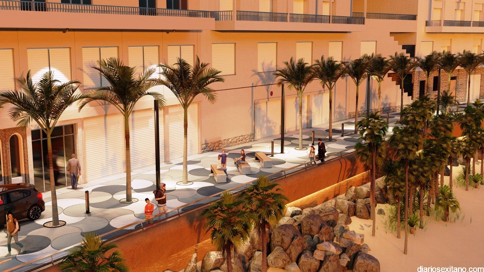 El alcalde sexitano ha querido destacar como será el nuevo pavimento inspirado en el antiguo paseo “que dibujaba conchas del mar en tonos azul blanco y gris. El nuevo muro tendrá barandillas escultóricas uniendo bancos, jardineras y miradores. La iluminación LED será escénica, convirtiendo las noches en un espectáculo de luz sobre el mar, entre palmeras flores y vegetación mediterránea que devolverán la vida y el color a este rincón, todo ello bajo estrictos criterios de sostenibilidad, accesibilidad y respeto medioambiental”.
