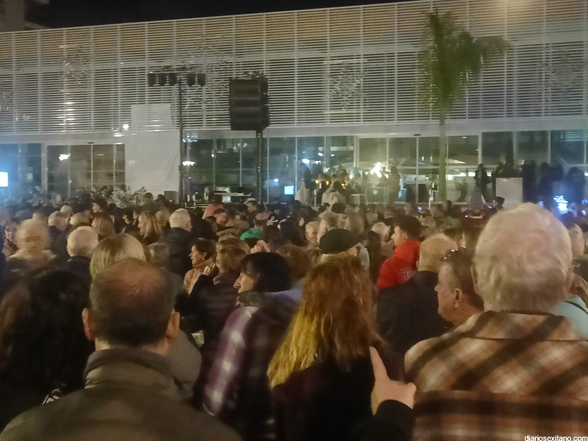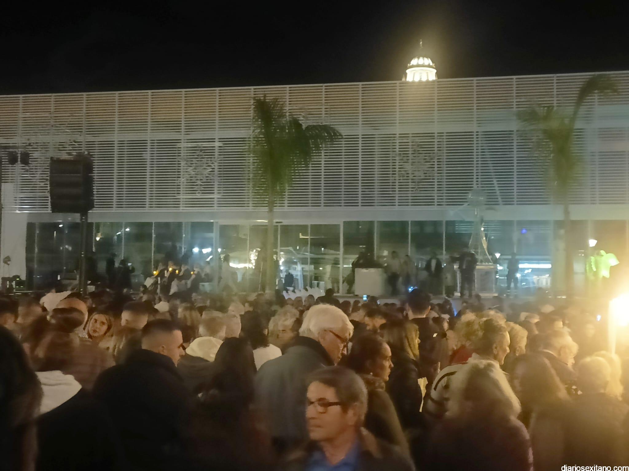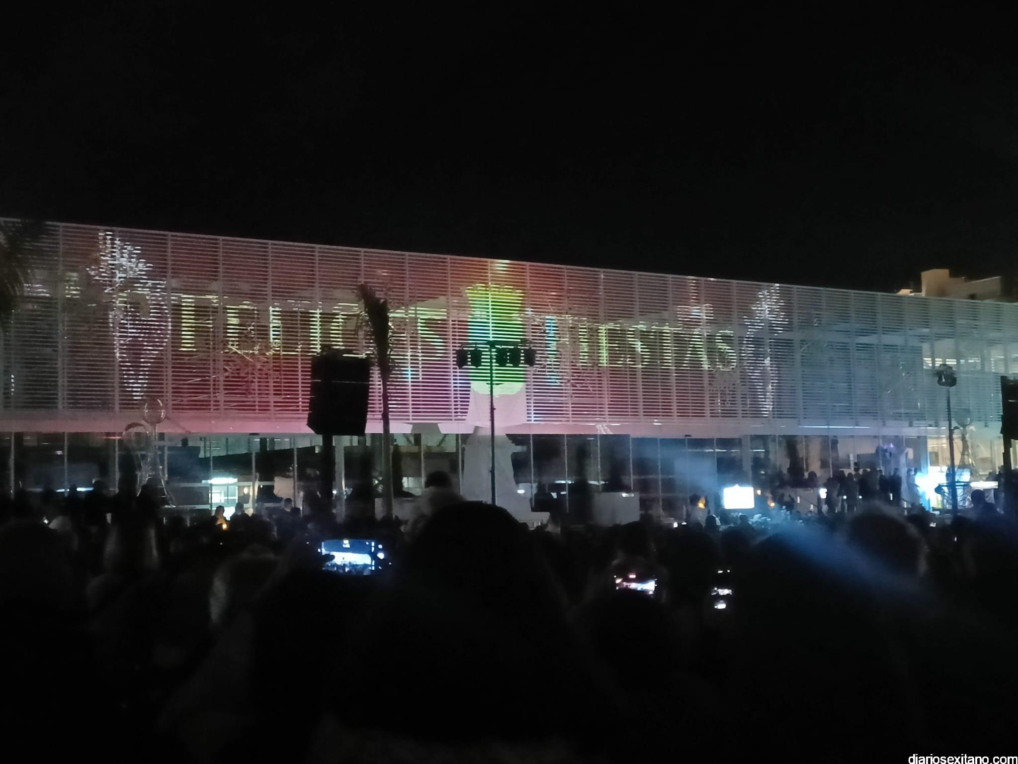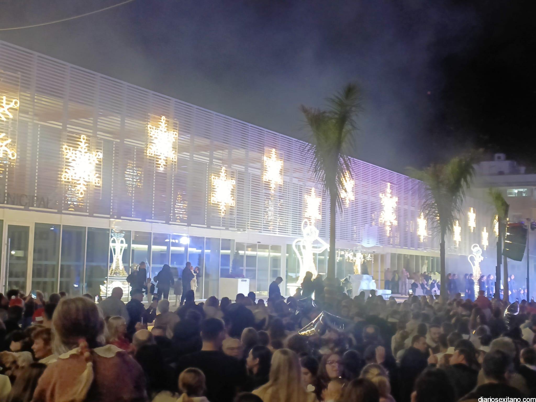 El cortejo lo abrió la “Estrella de la Ilusión”, este año representado por la profesora sexitana de danza y reconocida creadora de contenido, Judith Contreras, acompañada por un pasacalles organizado por el Conservatorio Profesional de Danza “Solange Janssen”, que llegó al Mercado donde se proyectó un video mapping que mostraba diferentes estampas y escenarios musicales, alegóricos a la Navidad.