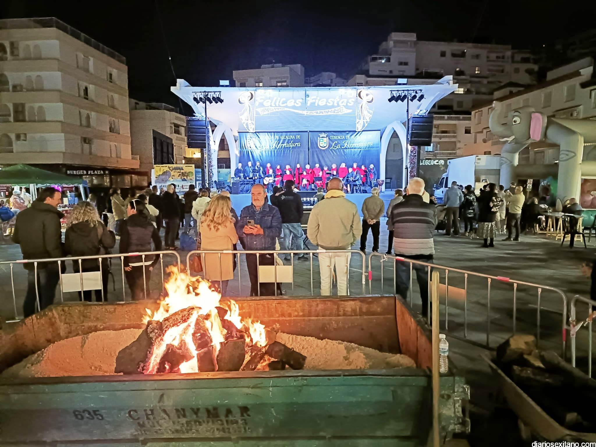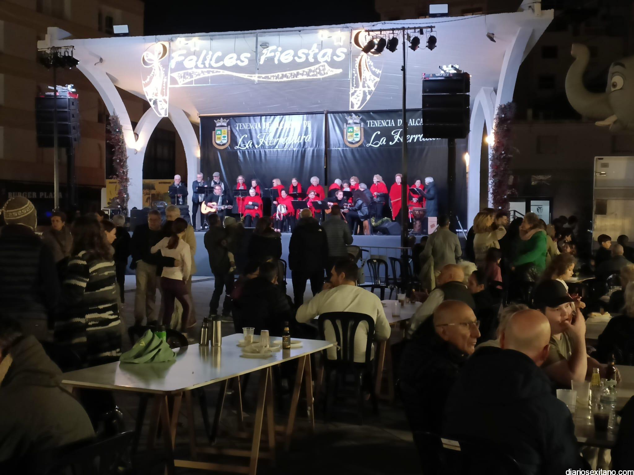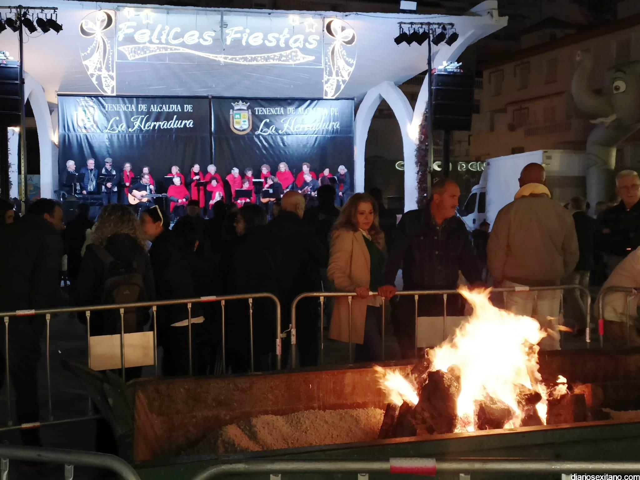 Precisamente, el atardecer coincidió con los cánticos de villancicos que interpretó el Coro “Cosas Nuestras” desde el escenario de la plaza herradureña.