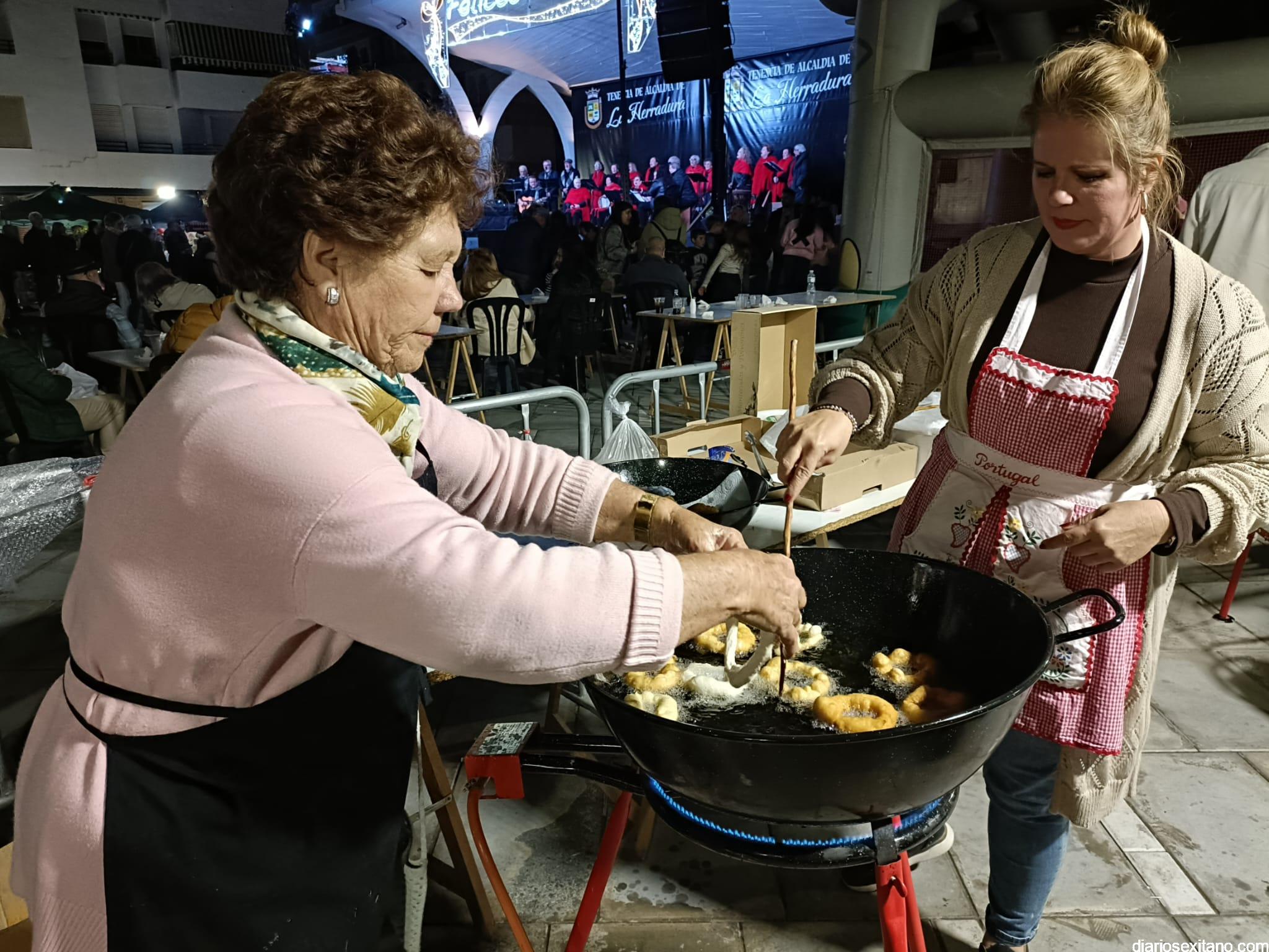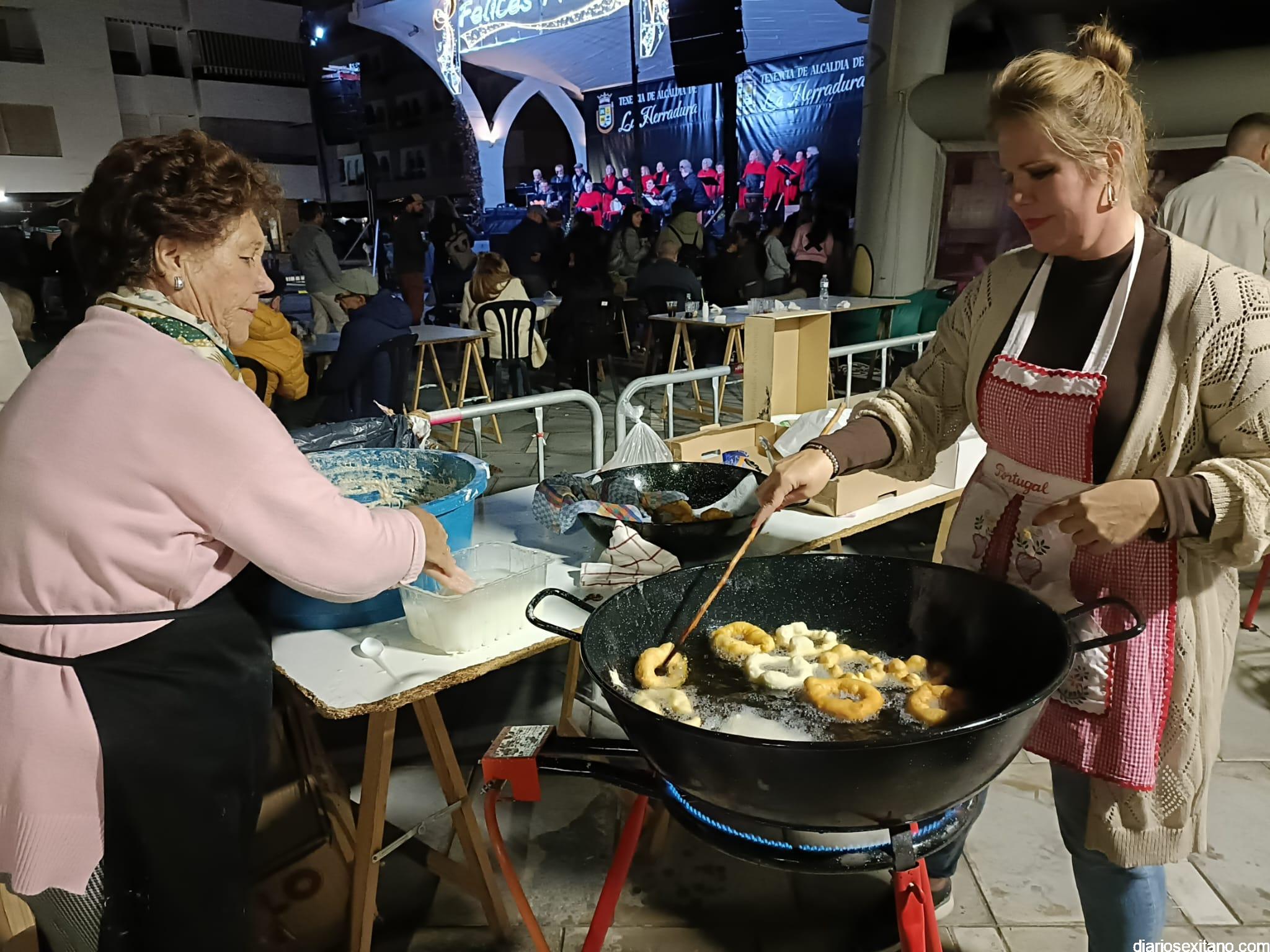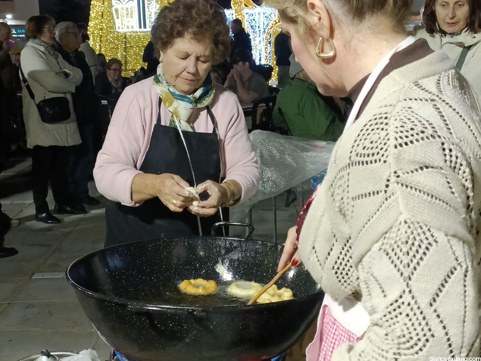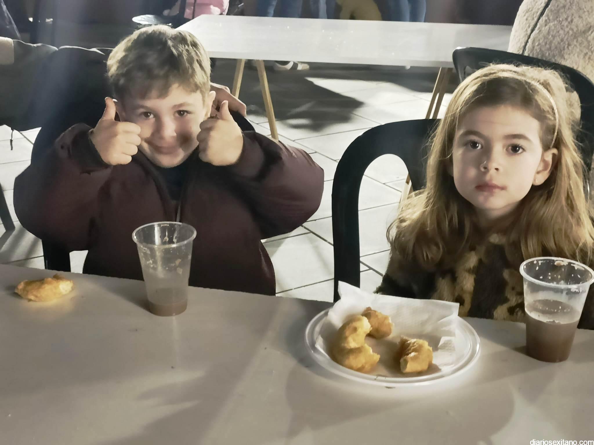Al caer la tarde, buñuelos con chocolate que, por cierto, vino tan bien como la hoguera ubicada en el centro de la plaza, ya que fue ocultarse el sol y se hizo notar la bajada de temperatura.
