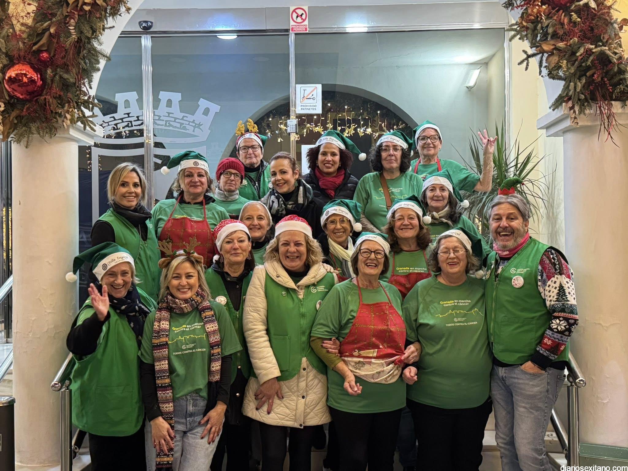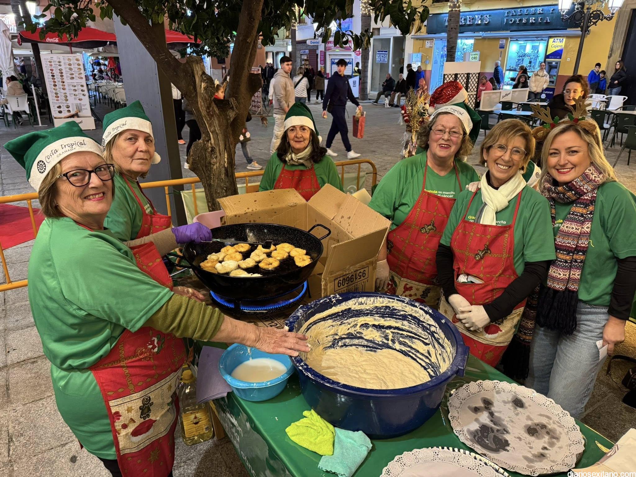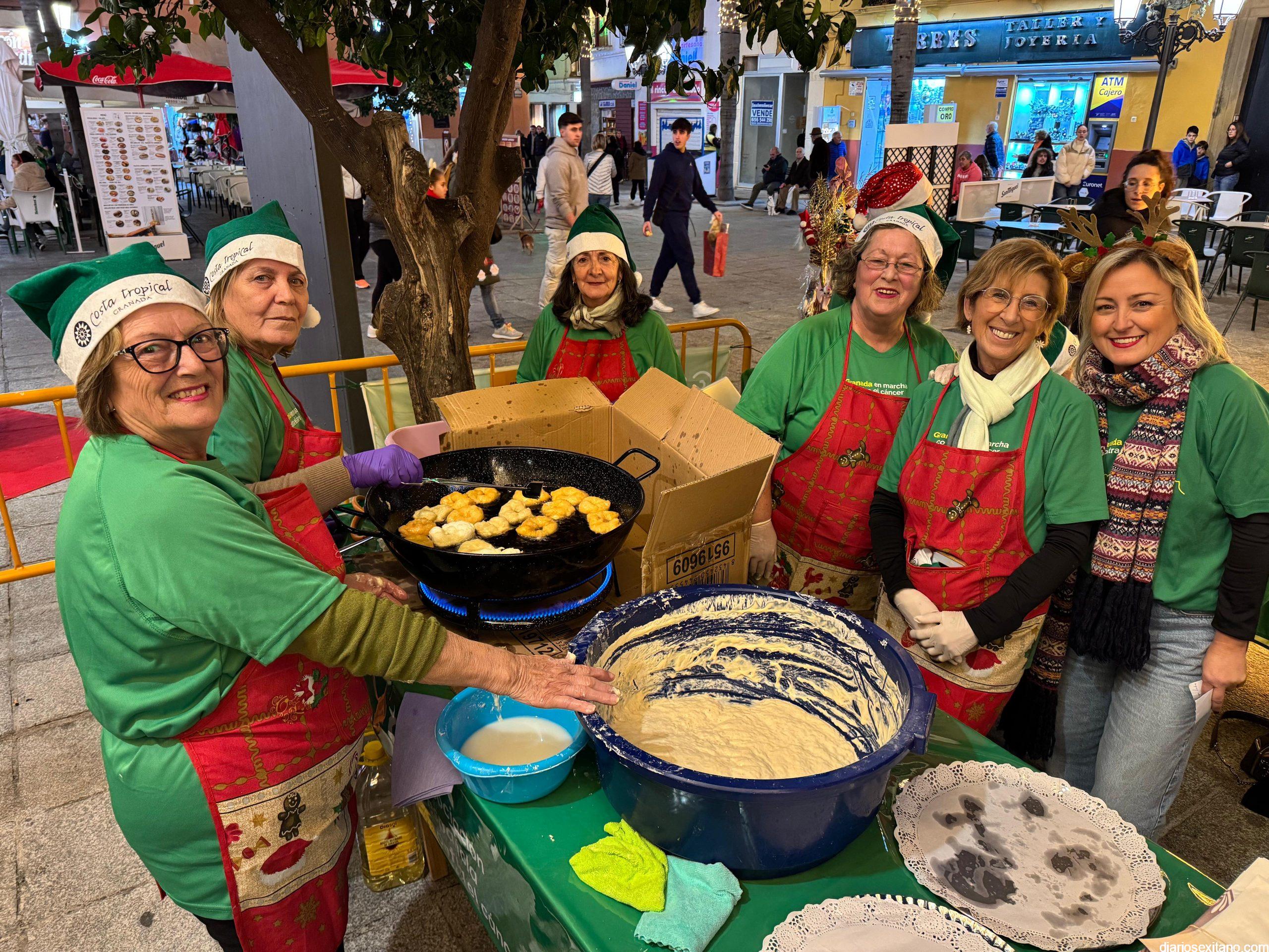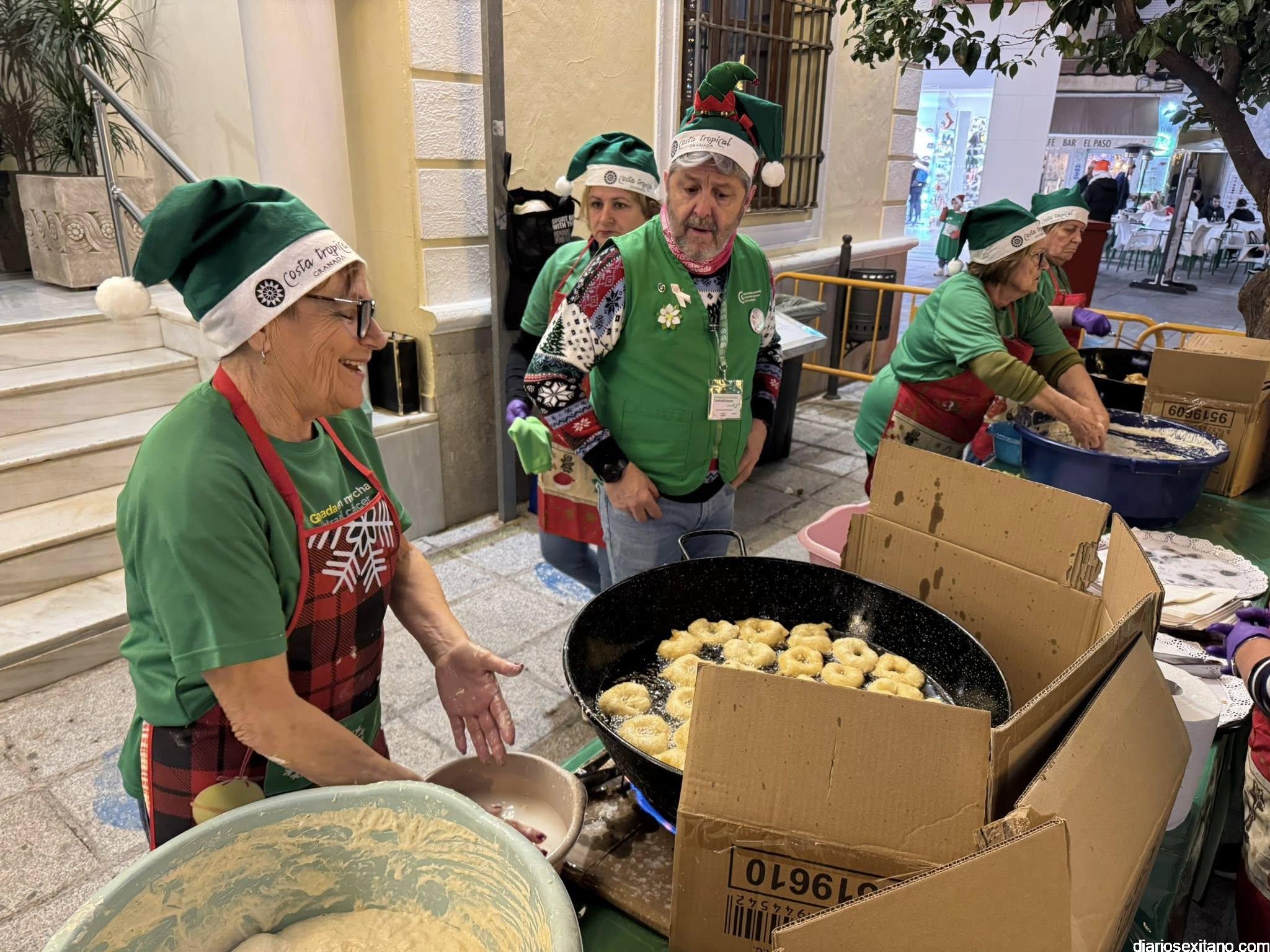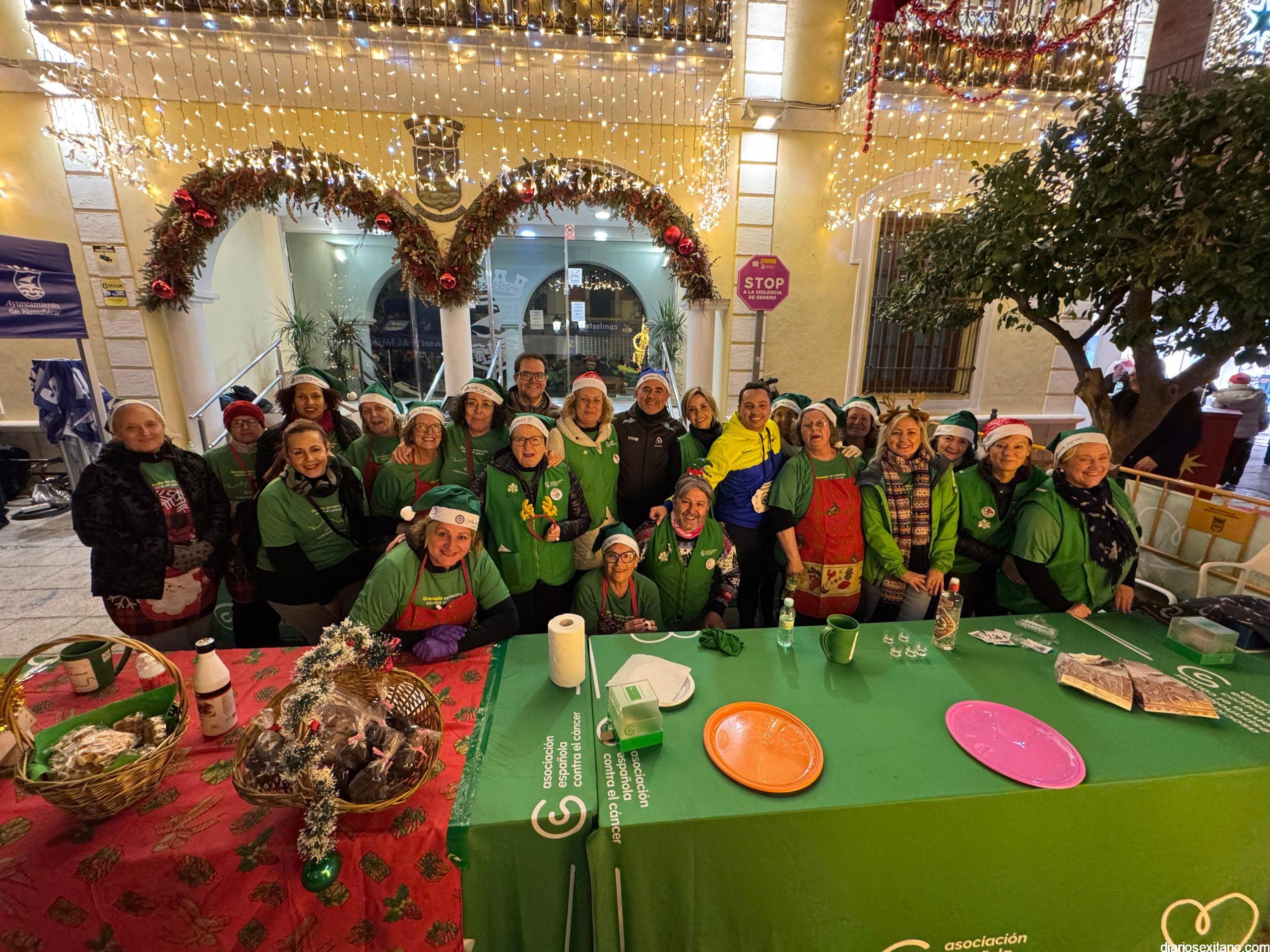 Antes de la prueba, el ambiente festivo estuvo garantizado gracias a la degustación de buñuelos, chocolate caliente y dulces típicos navideños de la mano de las voluntarias de la AECC de Almuñécar, coordinadas por la presidenta de la asociación, Conchi García, cuya recaudación se sumará al total de los dorsales vendidos, que será destinado a seguir apoyando a las familias de la AECC de Almuñécar.