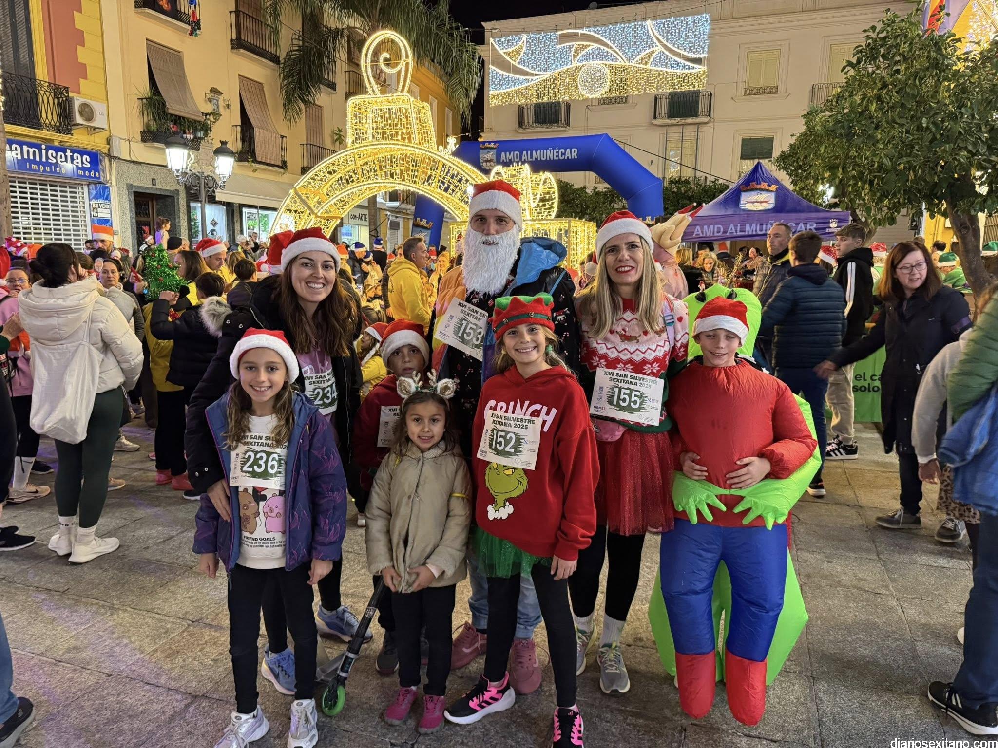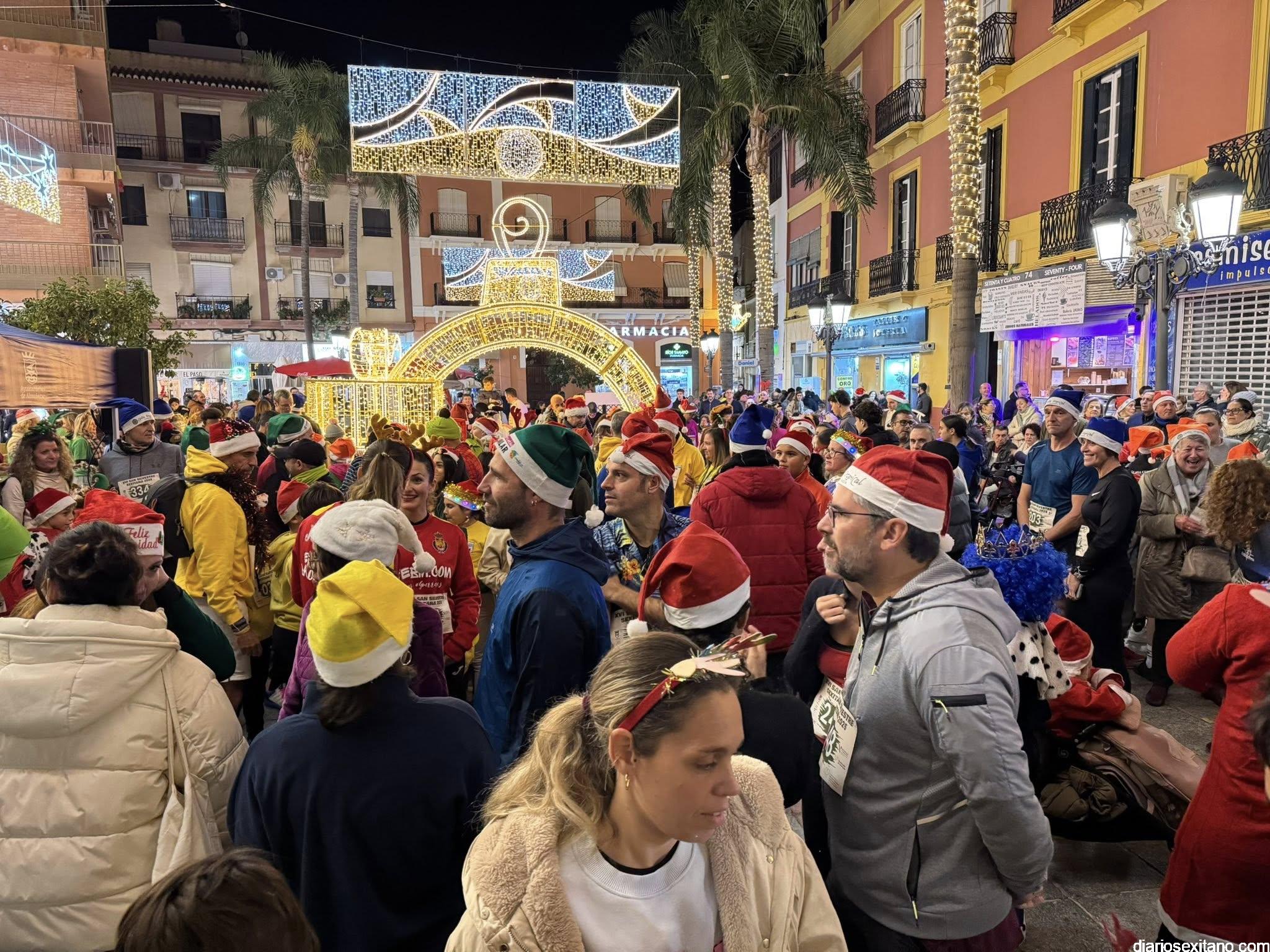 El evento reunió a adultos y niños, que, ataviados con disfraces navideños y motivos festivos, llenaron de color el centro comercial sexitano y la plaza de la Constitución, lugar en el que estaba ubicada la salida y meta de la prueba.
