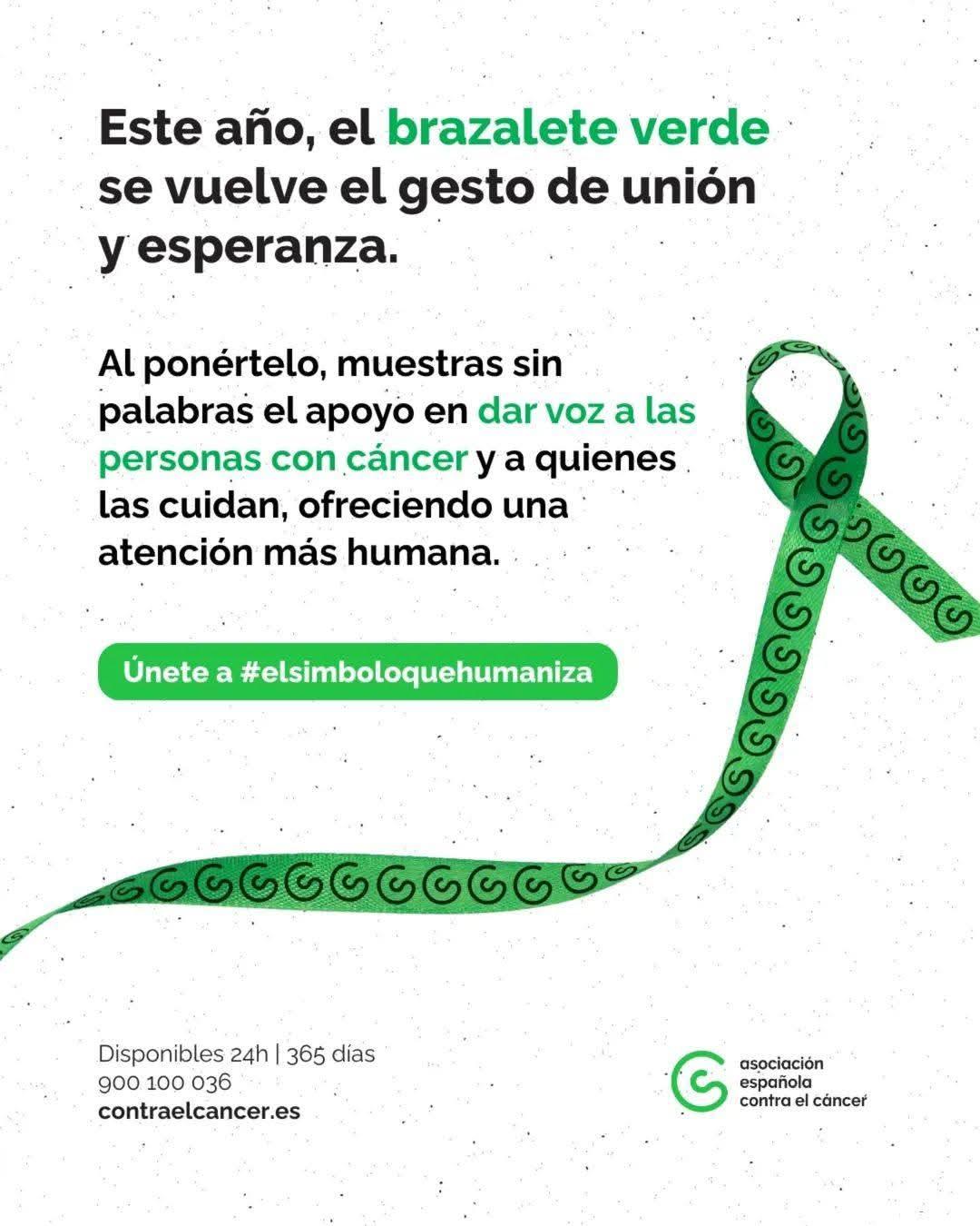 Las voluntarias de la Junta Local de la AECC de Almuñécar, con su presidenta Concepción García, a la cabeza, han dado a la conocer la campaña “#ElSimboloQueHumaniza consistente en un brazalete verde símbolo de esperanza y apoyo frente al cáncer.