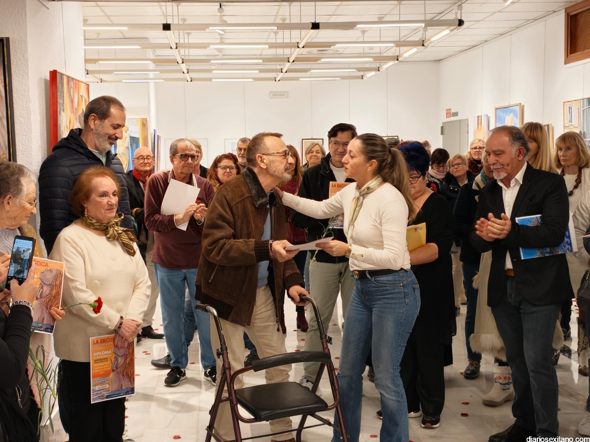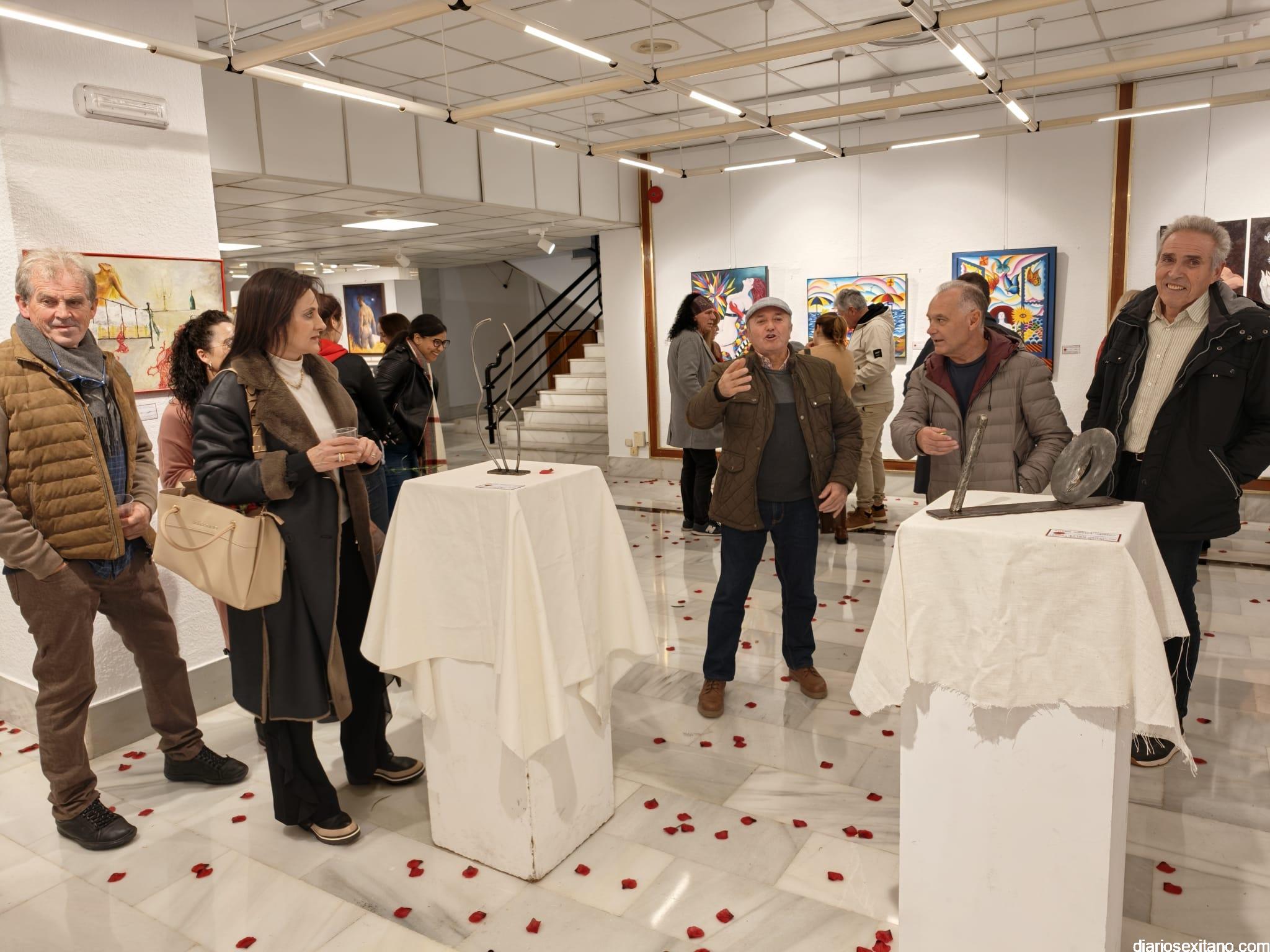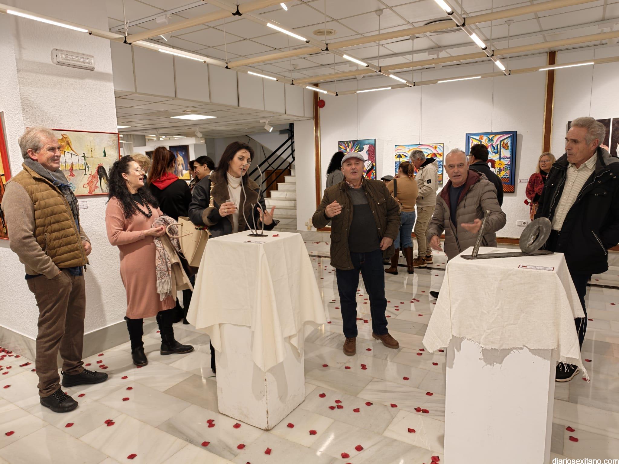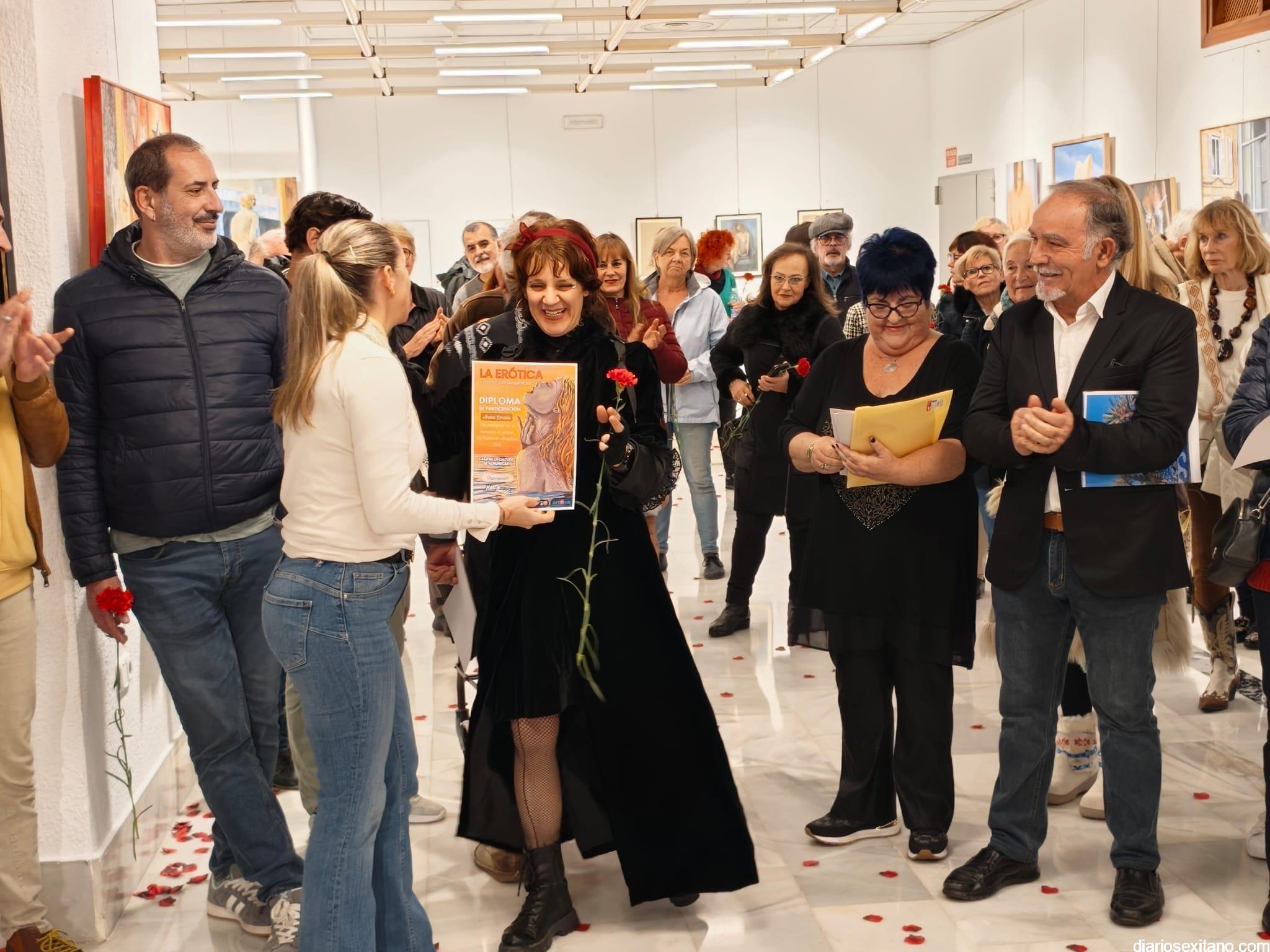 La sala de exposiciones de la Casa de la Cultura de Almuñécar se llenó de público con motivo de la inauguración de la muestra colectiva artística “La Erótica”, que reúne trabajos de una veintena de artistas.