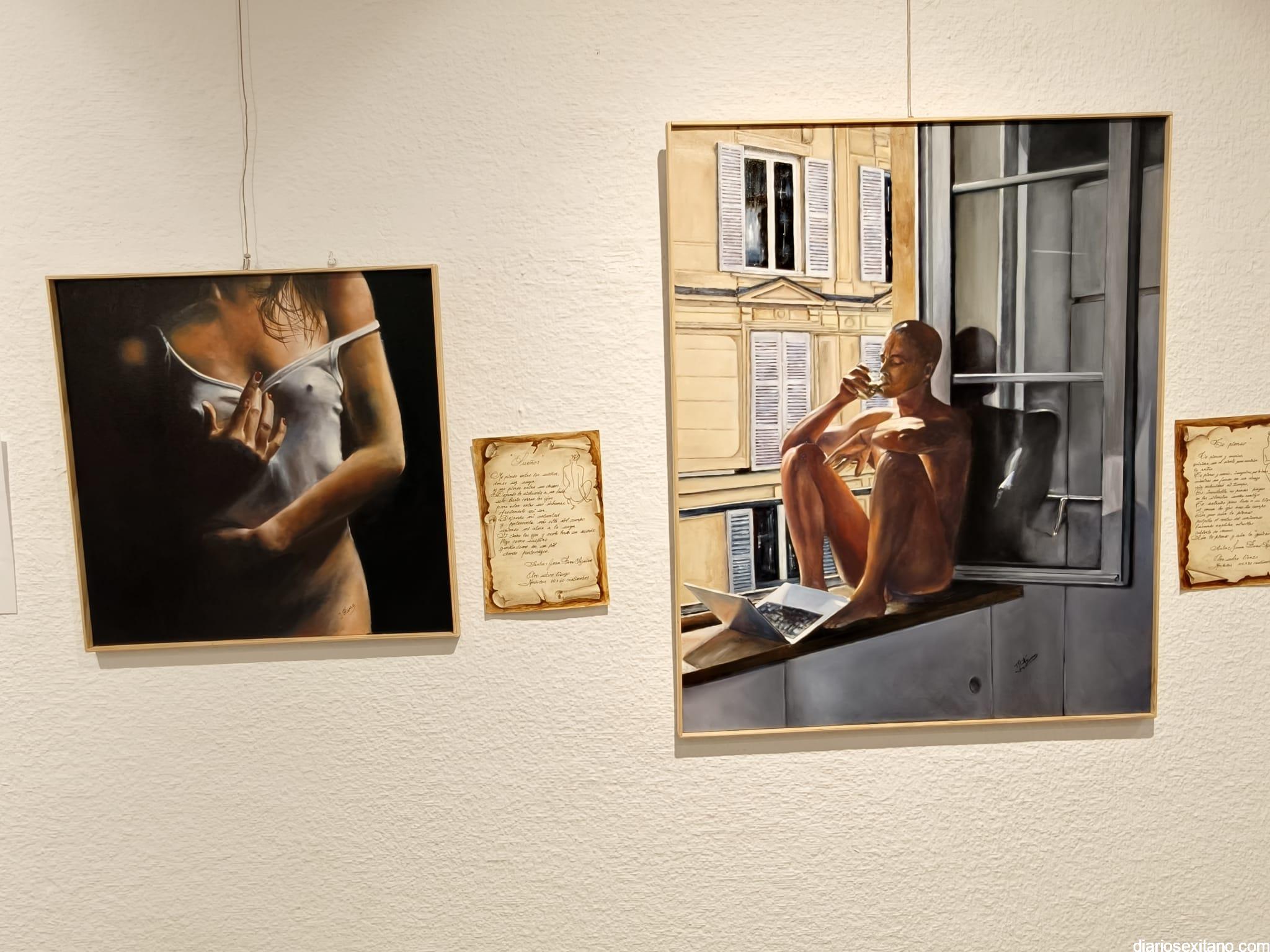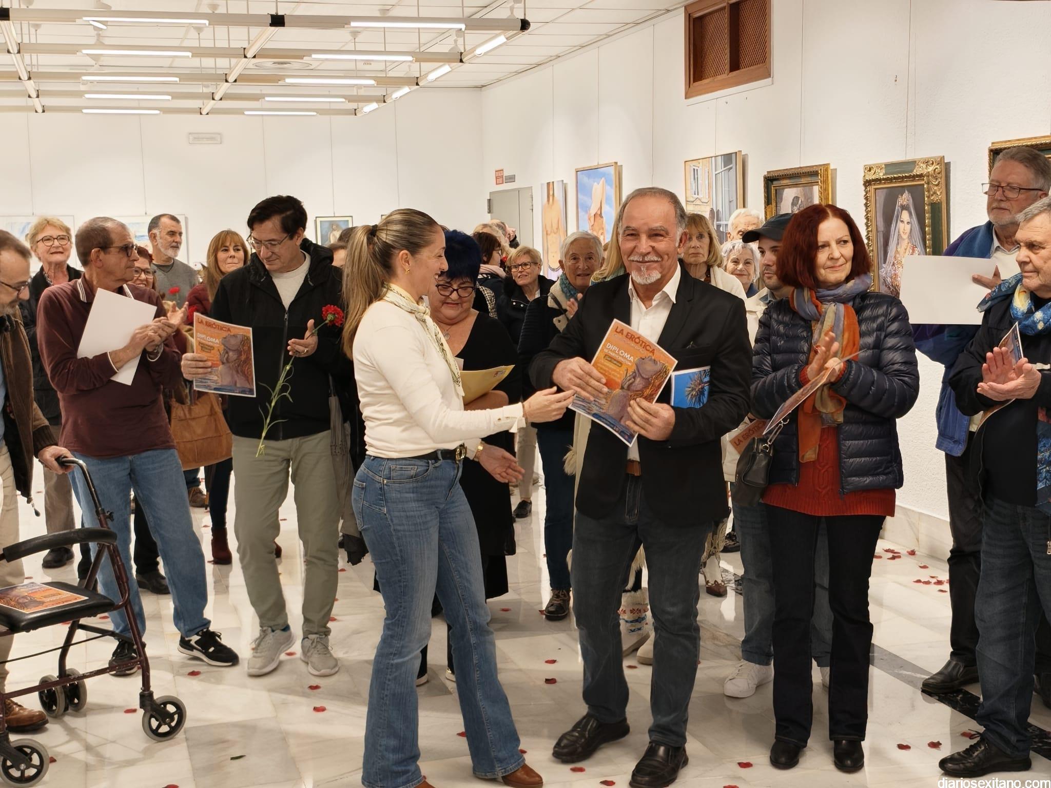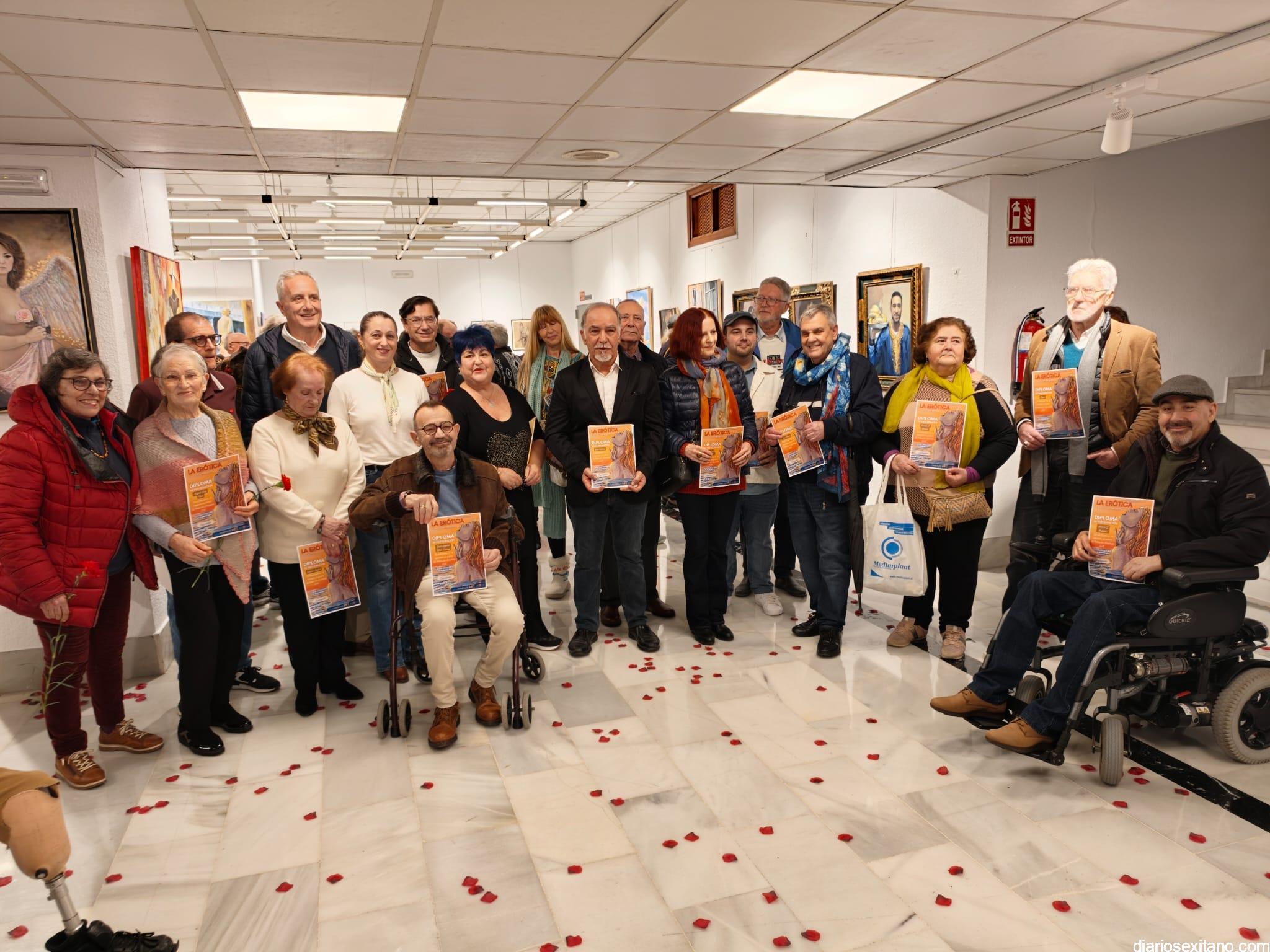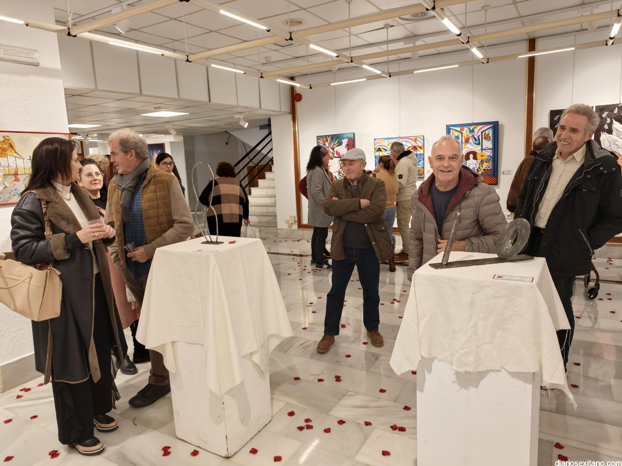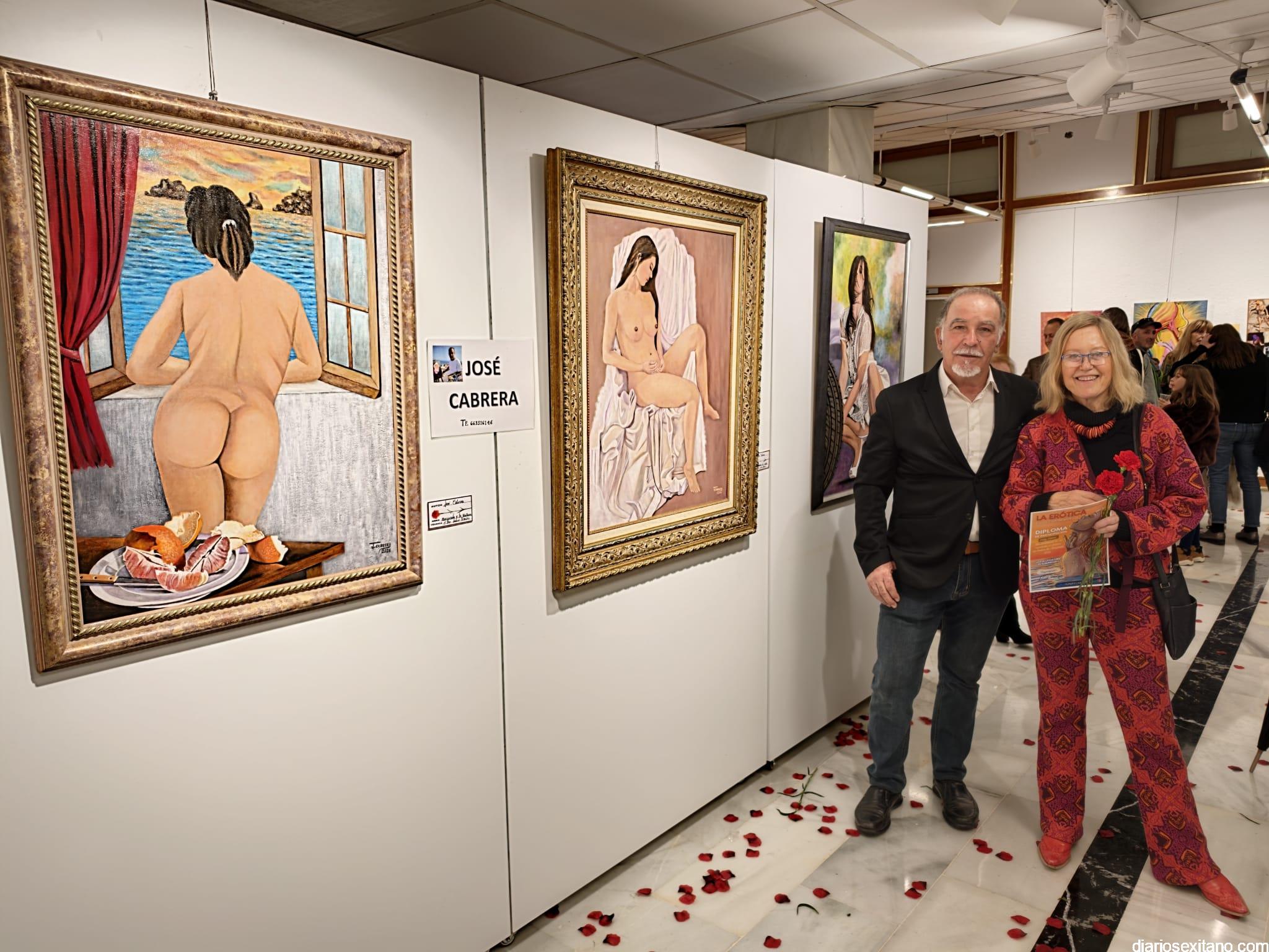 La sala de exposiciones de la Casa de la Cultura de Almuñécar se llenó de público con motivo de la inauguración de la muestra colectiva artística “La Erótica”, que reúne trabajos de una veintena de artistas.