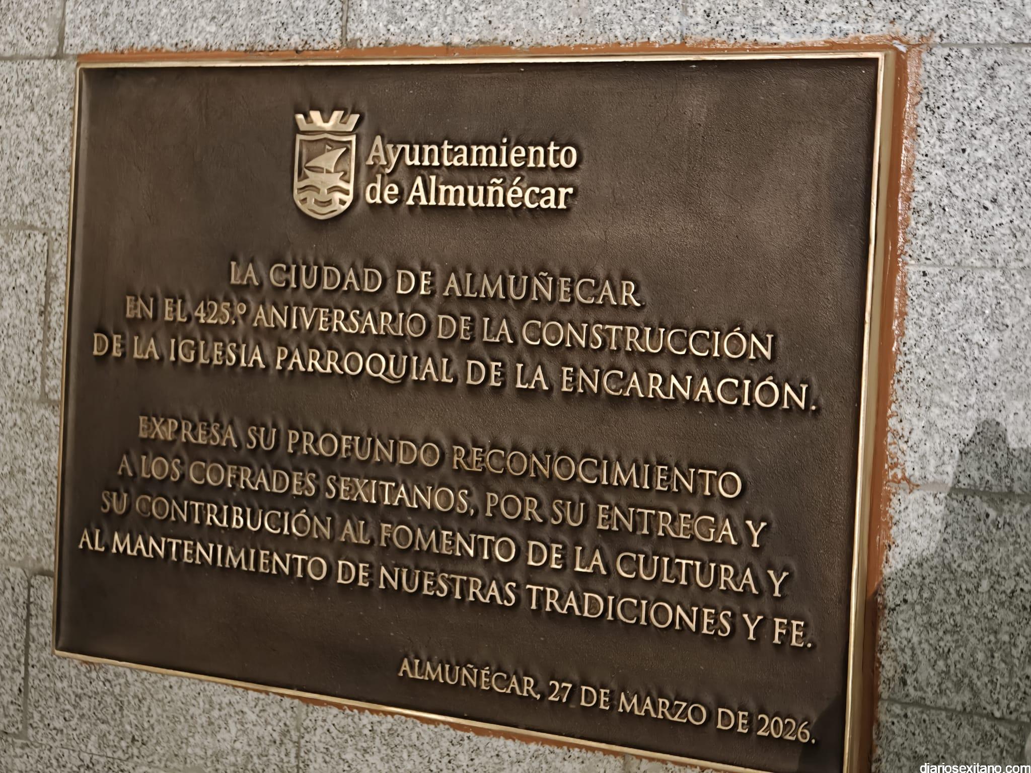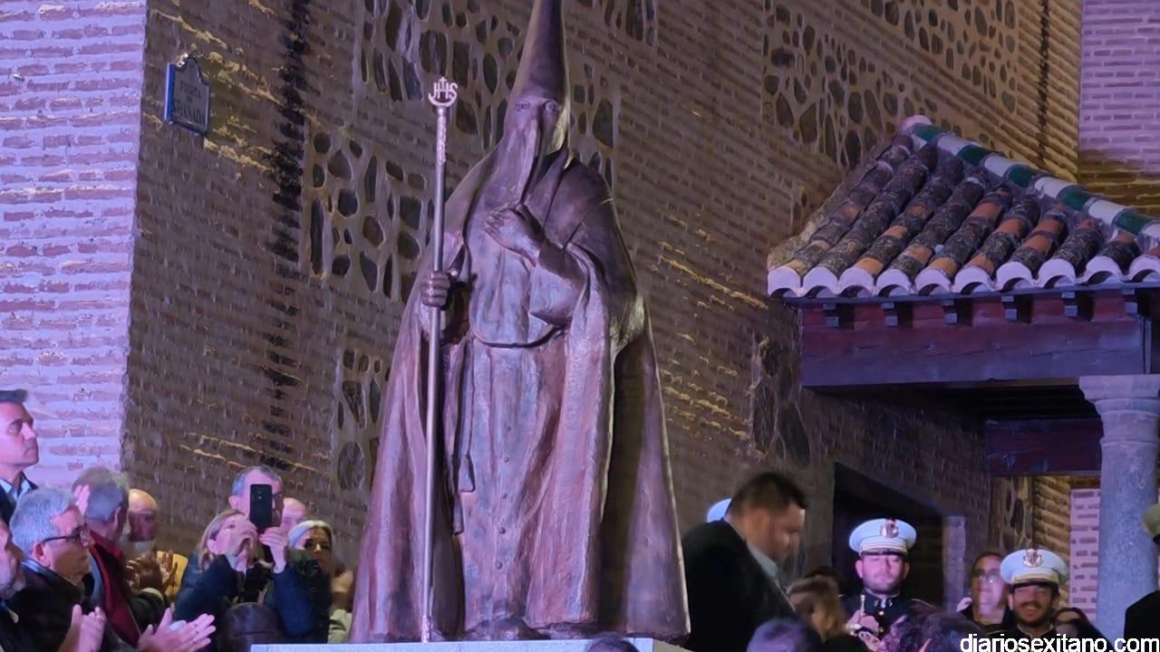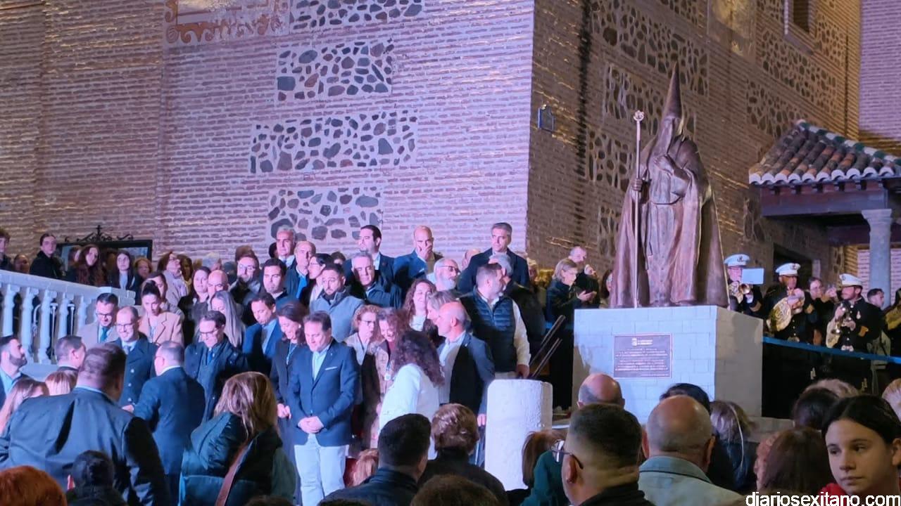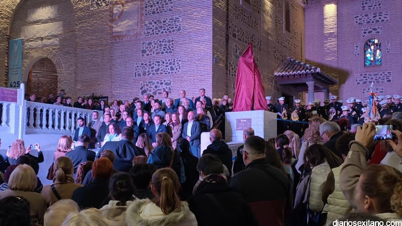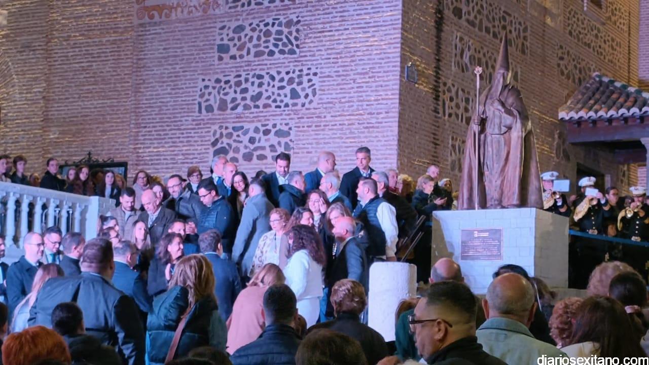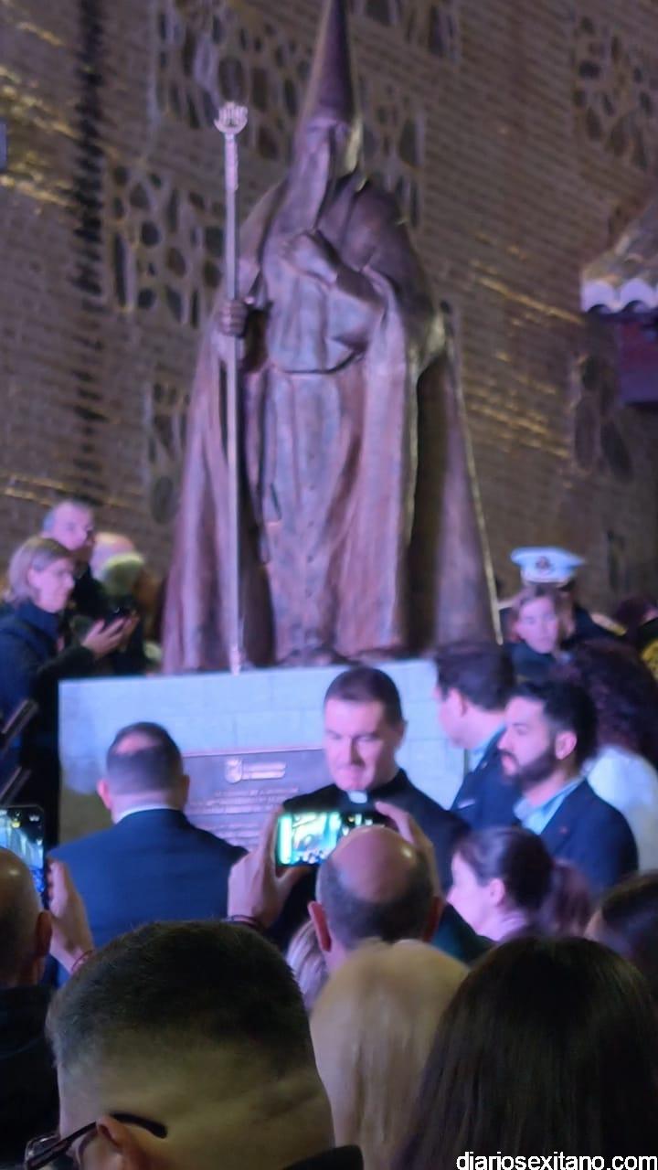El acto, que se celebró tras la misa en honor de la Virgen de los Dolores, tuvo lugar en la escalinata de acceso al atrio de la iglesia parroquial de la Encarnación que celebra el 425 aniversario, donde se llevó a cabo el descubrimiento de una escultura monumental que representa a un penitente y que se ubica en la intersección de la calle Puerta de Granada con la calle Jesús Nazareno, “como símbolo permanente de reconocimiento a todos aquellos que, generación tras generación, han mantenido viva la tradición de la Semana Santa sexitana”.